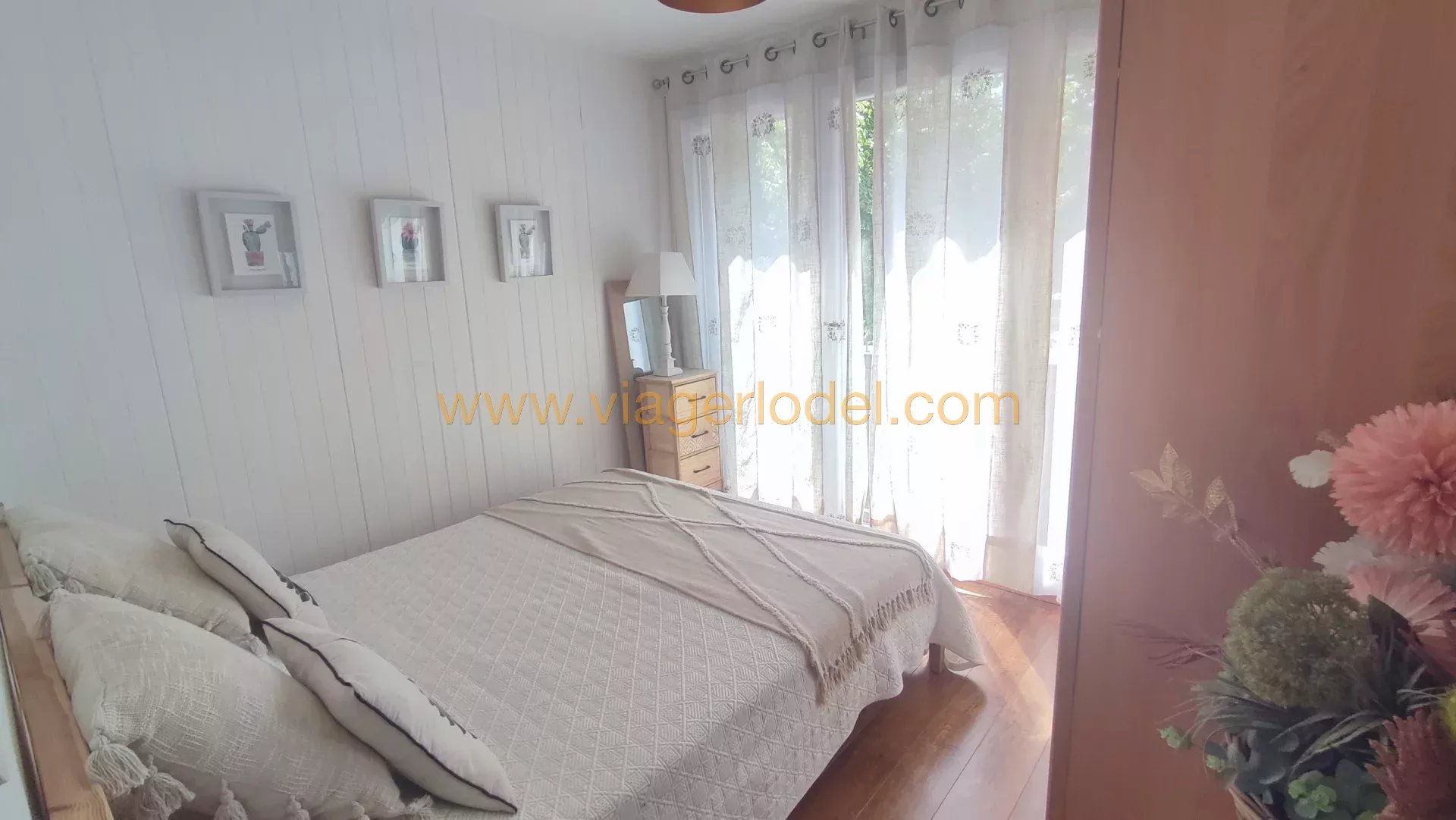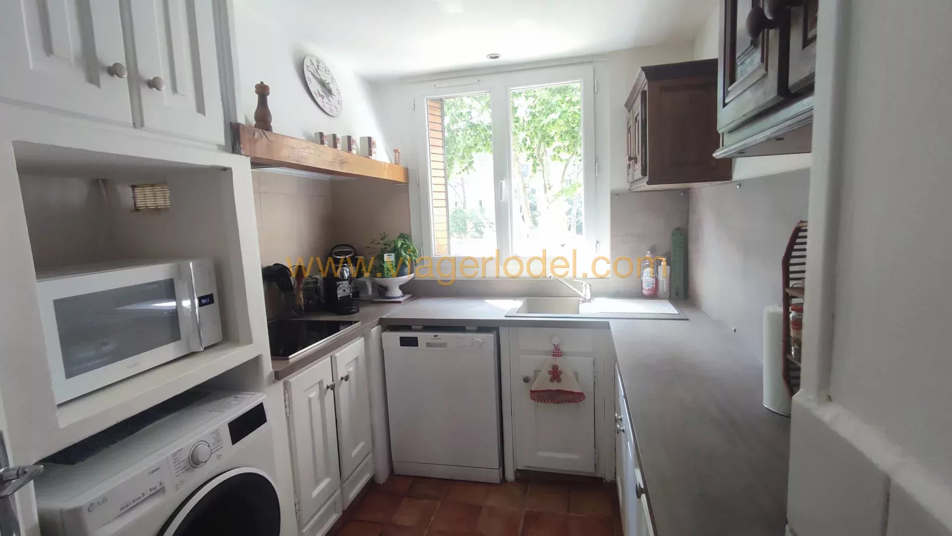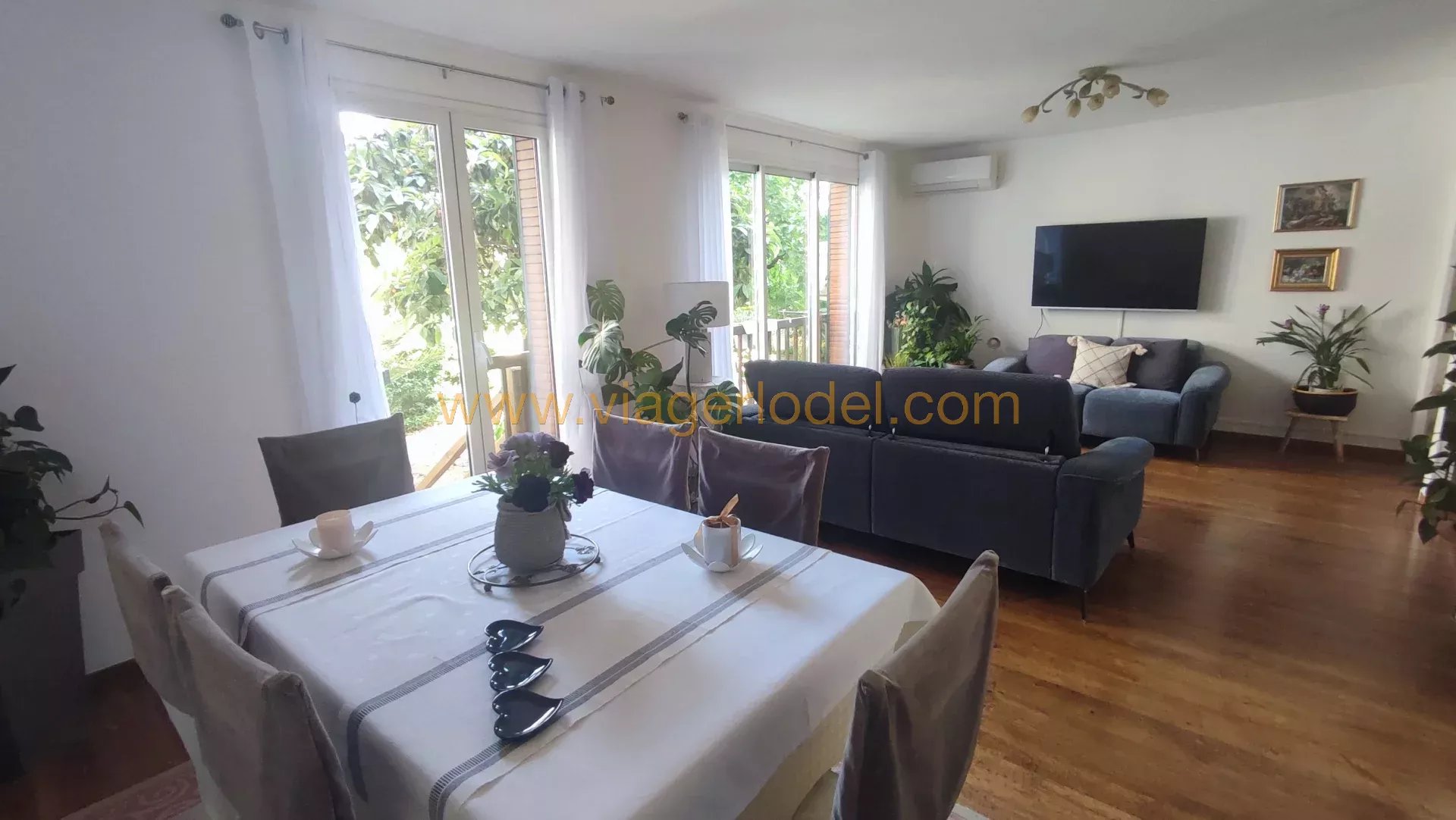 SOUS COMPROMIS - Réf. 9821 - VIAGER OCCUPE - AIX-EN-PROVENCE (13) SOUS COMPROMIS - Réf. 9821 - VIAGER OCCUPE - AIX-EN-PROVENCE (13) JAS DE BOUFFAN Dans une résidence sécurisée, un très agréable et lumineux APPARTEMENT de 4 PIECES traversant, sans vis-à-vis, avec vue sur le parc de la résidence, situé au rez-de-chaussée surélevé avec un escalier privé pour accéder au parc et un espace réservé aménagé en terrasse/coin repas en bas de l’escalier. Proche de tous commerces (boulangerie, tabac, centre commercial, pharmacie, centre médical, laboratoire...), transports en commun (bus) en bas de l’immeuble et proche de la Bastide du Jas-de-Bouffan (maison de Paul Cézanne), cet appartement se compose : • Un hall d’entrée, • Un grand séjour Est avec accès direct sur le parc par les escaliers, et jouissance d’un espace terrasse, • Une cuisine séparée aménagée Ouest, • Une chambre Est avec vu sur le parc, • Une chambre Ouest, • Un couloir avec placard, • Une salle d’eau avec douche italienne, • Un wc séparé. Sols : carrelage et parquet Superficie : 64,8 m² Chauffage électrique à accumulation de chaleur + climatisation réversible dans le séjour. Eau chaude par cumulus. • Un PARKING • Une CAVE N.B. : BELLE PRESTATION - APPARTEMENT entièrement refait. Bien entretenu avec double vitrage, porte blindée, climatisation réversible dans le séjour. COMPTANT : 65 000 euros HAI + Rente : 900 euros / mois indexée OCCUPE 1 TETE : 85 ans (D) Valeur Vénale : 225 000 euros T.F. 2024 : 843 euros Charges :107 euros /mois (incluant entretien immeuble et jardinier) Les informations sur les risques auxquels ce bien est exposé sont disponibles sur le site Géorisques : www.georisques.gouv.fr