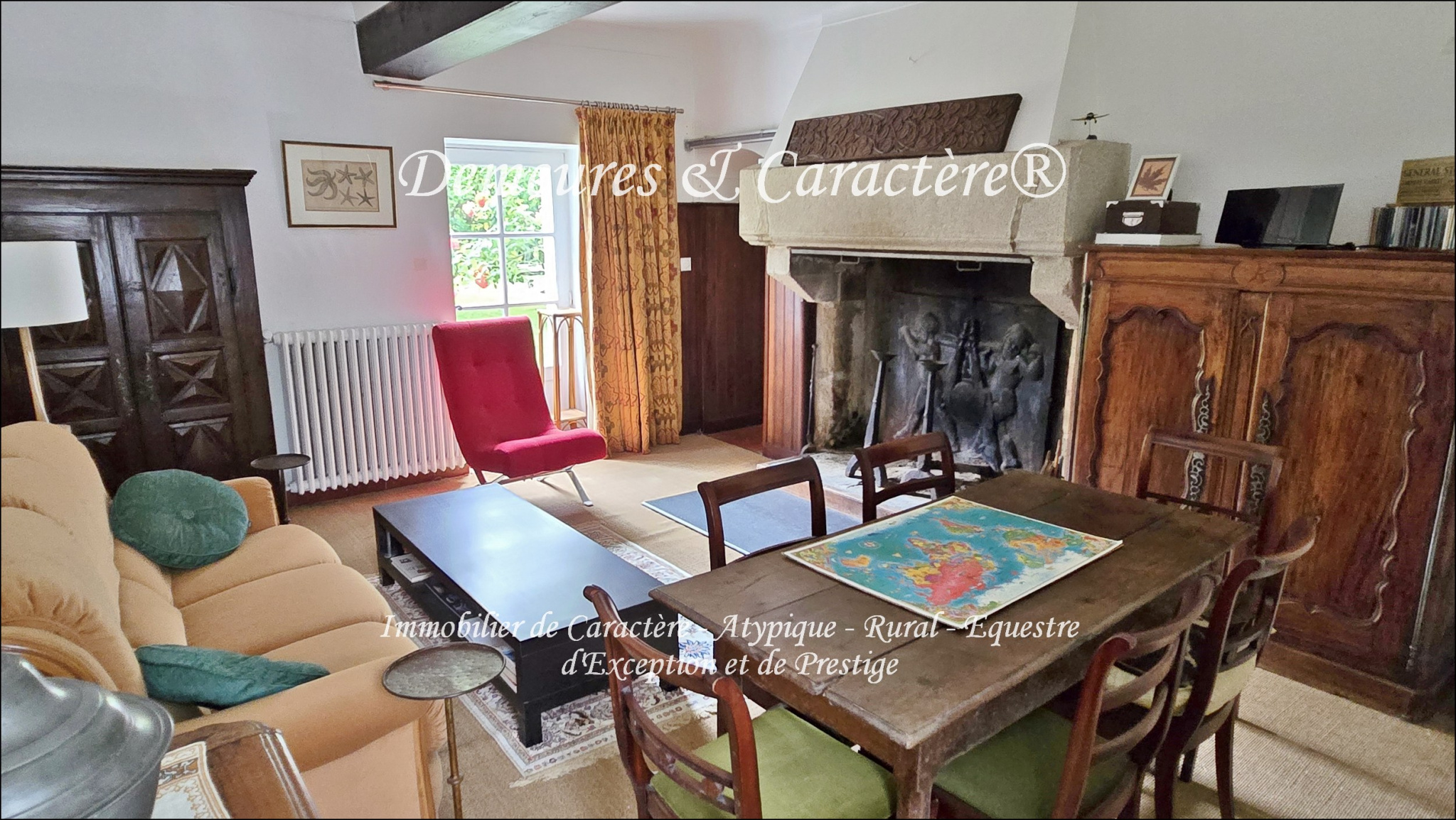 Maison de maître des années 1600 et son gîte ou maison secondaire + dépendances et garage, l'ensemble sur 1 512m2 bénéficiant d'un cadre remarquable et d'une situation avantageuse (toutes commodités et sentiers de promenade à proximité immédiate, à pied) au calme d'un village agréable et bien équipé. La Demeure est lumineuse, son atmosphère chaleureuse, de nombreux éléments d'époque subsistent (cheminées, poutraison, vitrail, portes et poignées, ...). Une belle hauteur sous plafond participe aux volumes équilibrés de ses pièces. Cette confortable Maison de caractère (350m2, 6/7 chambres) est composée, au rez-de-chaussée, d'un petit et grand hall d'entrée, vestiaire/cellier et sanitaires, spacieuse cuisine AE (de 2022) avec cheminée/barbecue, salle-à-manger avec cheminée monumentale, salon bibliothèque avec cheminée monumentale, coin TV et espace bureau, chambre en suite avec salle de douche. Sols céramique, tomette, dallage pierre et moquette sur dalle béton. À l'étage : Mezzanine sur le grand hall d'entrée et la cage d'escalier, couloir et dégagement desservant 5 chambres supplémentaires (dont certaines avec balcon, placard et/ou cheminée décorative, ...), pièce à usage de dressing/rangement ou possible 7ème chambre, 4 salles de bain ou salle d'eau 'vintage', WC. Sols parquet massif ancien, moquette sur dalle béton et carrelage/céramique. Chauffage central par système OKOFEN Pellematic de 2022 distribué par radiateurs fonte, ECS produite par 3 cumulus électriques, isolation supérieure, mur en pierre et enduit avec doublage partiel, huisseries simple vitrage en principal, porte d'entrée récente sécurisée, volets traditionnels bois, classement énergétique DPE en catégorie C, électricité refaite en 2023, couverture tuile refaite en 2024, quelques travaux de finition ou reprise de peinture sont à prévoir, la maison est raccordée à la fibre internet haut débit. Les pièces principales (cuisine, salle-à-manger et salon bibliothèque) offrent un accès direct ainsi que des vues particulièrement agréables sur la terrasse exposée Sud et le jardin à l'abri de tout vis-à-vis. Terrasse en pierre naturelle, préau de détente/terrasse couverte.