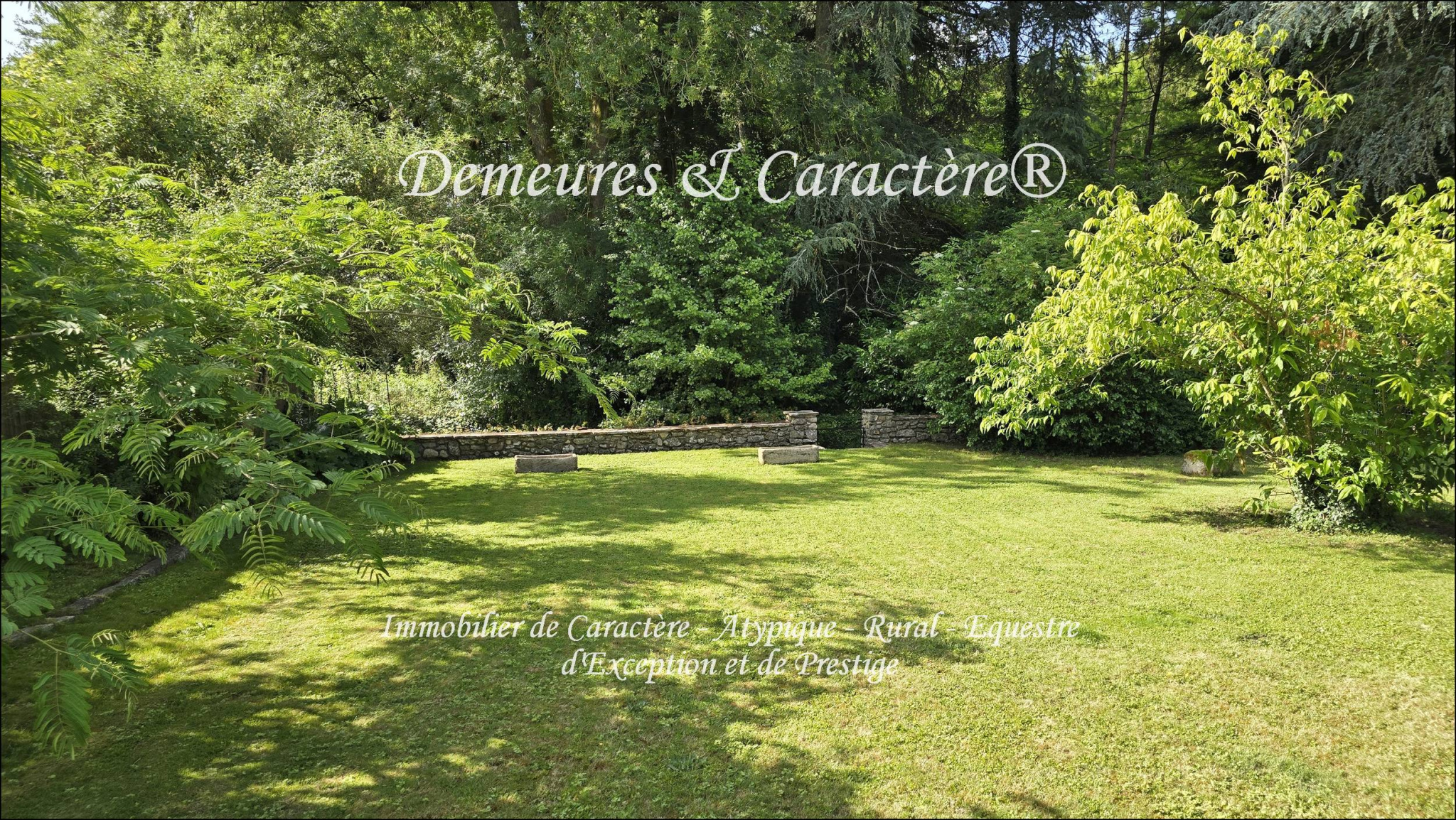 Jardin clos de mur avec puits et petit cours d'eau en limite de propriété (sans risque d'inondation).
