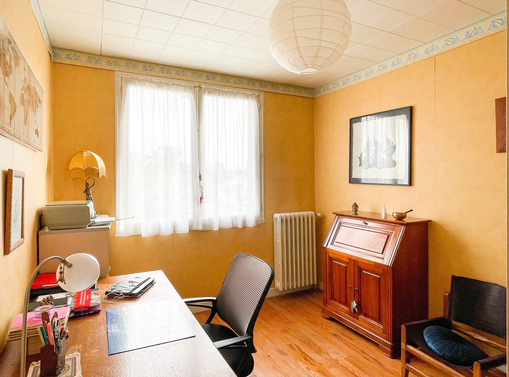 A l'étage le dégagement reçoit beucoup de lumière et vous emmène à 3 chambres avec placards ,un bureau et ses parquets bois d'origine et une salle de bain.Chauffage gaz de ville et assainissement tout à l'égout.Autre avantaage, un petit escalier monte dans les combles de 60m2 au sol avec un plancher isolé sans grande hauteur mais idéal pour du rangement.