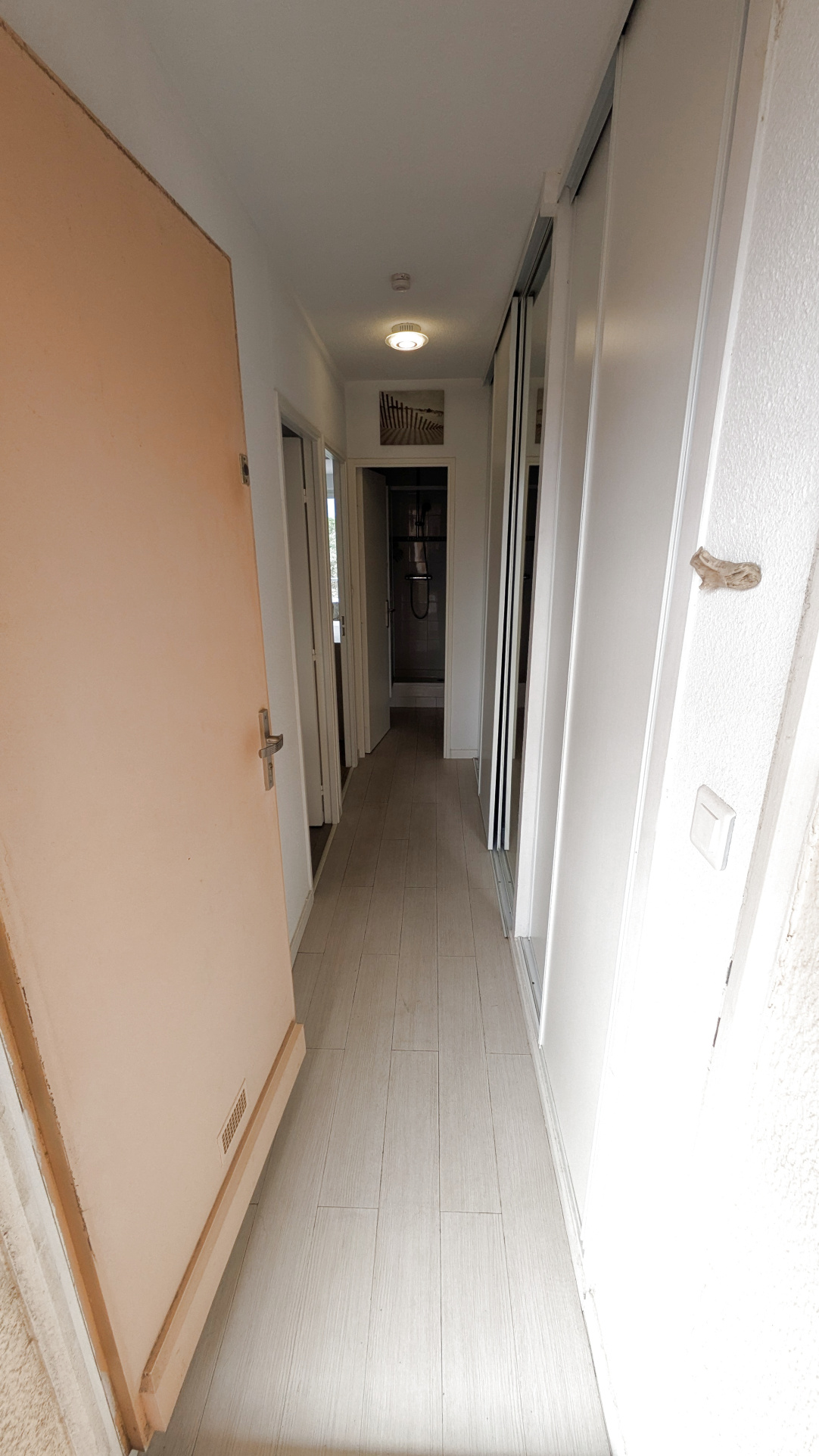 3ème ETAGE : entrée, grand séjour (loggia intégrée), chambre, salle de douches avec wc, cuisine et parking.