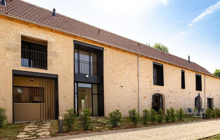 Au coeur du village, appartement T4 en duplex dans grange rénovée avec accès piscine commune.