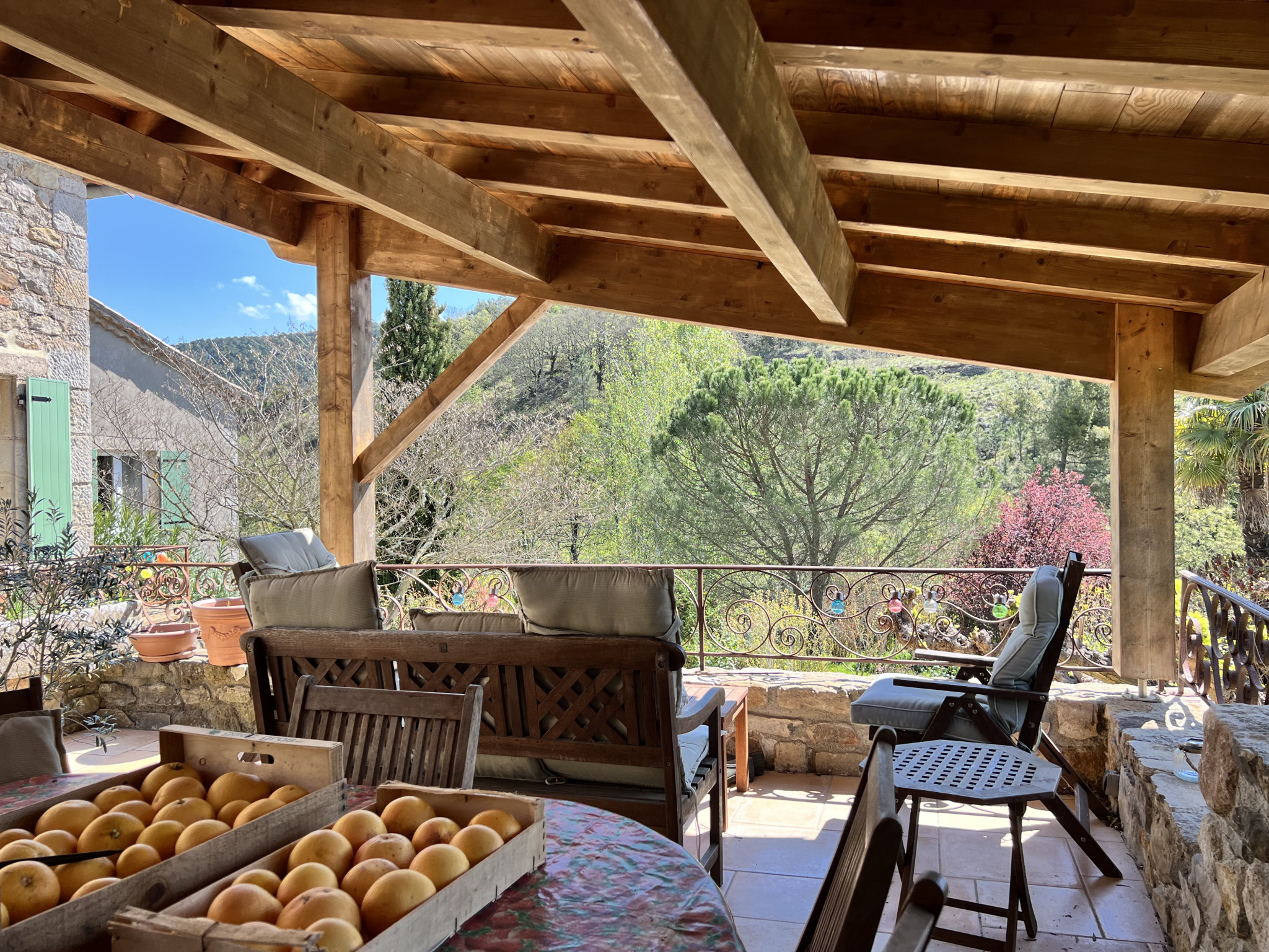 La Bâtisse propose plus de 182 m2 habitables, élevés sur Caves Voutées avec 2 Superbes Terrasses de part et d'autre de la maison proposant une magnifique Vue sur les Montagnes environnantes coté Nord-Estet sur la Piscine en contrebas et le Jardin Paysagé coté Sud-Ouest.