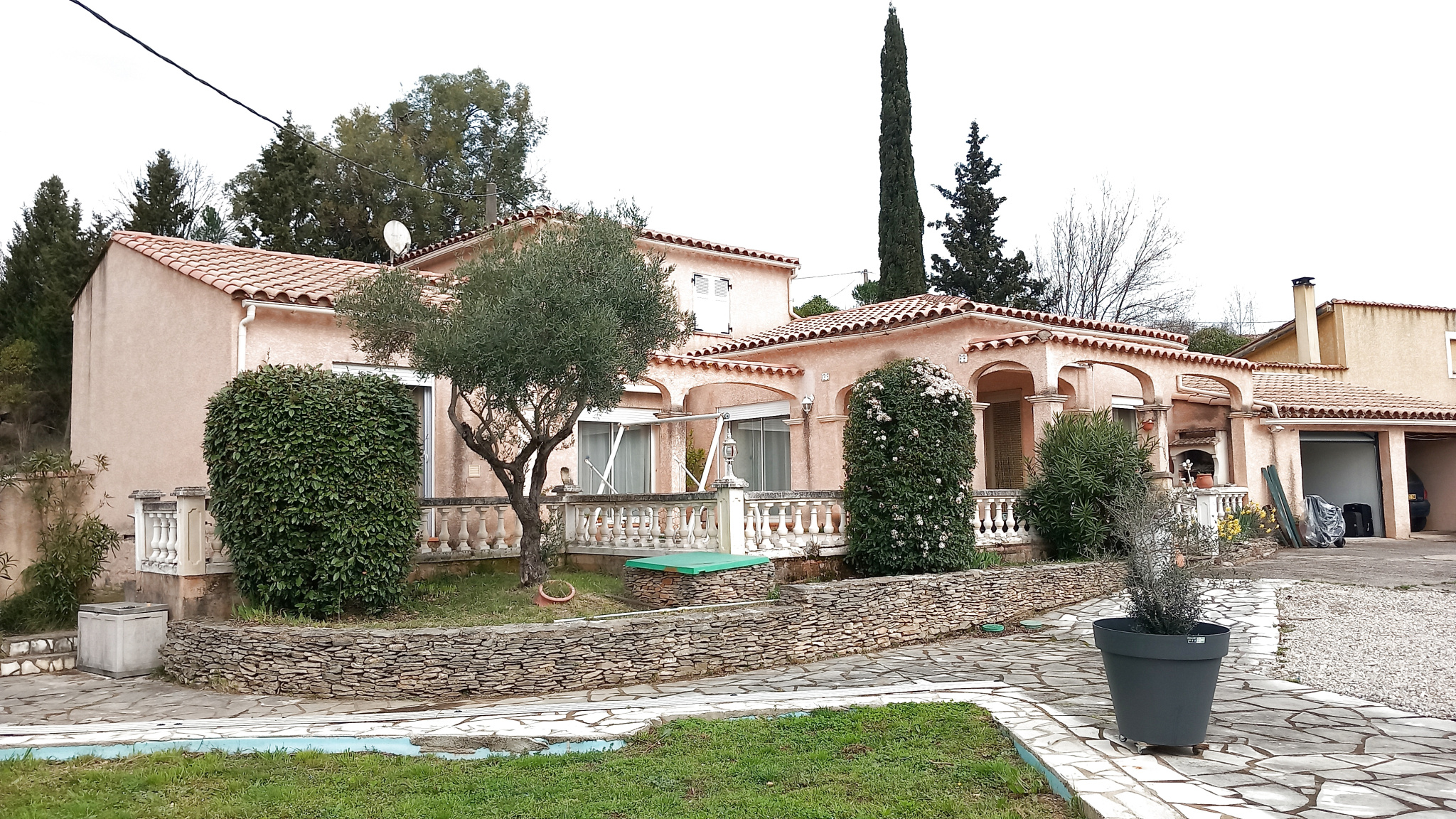 Bedarieux 34600, Superbe Villa 137M2 avec Garages sur parcelle de 1580 M2. Orientée sud cette propriété de 1580 M2,  totalement close, avec grand jardin disposant de nombreux parkings, plus trois places intérieurs garages, et,  'ancienne piscine à réaménager', Endroit calme et paisible commerces, école, centre ville à 3Mnts. Villa de standing proposant un plain pied de 108M2 Grand salon, cuisine ouverte sur salle à manger, le tout ouvrant sur une belle terrasse avec arcades, chambre avec salle d'eau et WC, dressing, et bureau, plus 2 chambres salle d'eau et wc sur l'étage 30M2. Une très belle opportunité pour un bien rare à la vente dans ce quartier assez recherché. le prix : 320 000EUR FAI. charge vendeur.