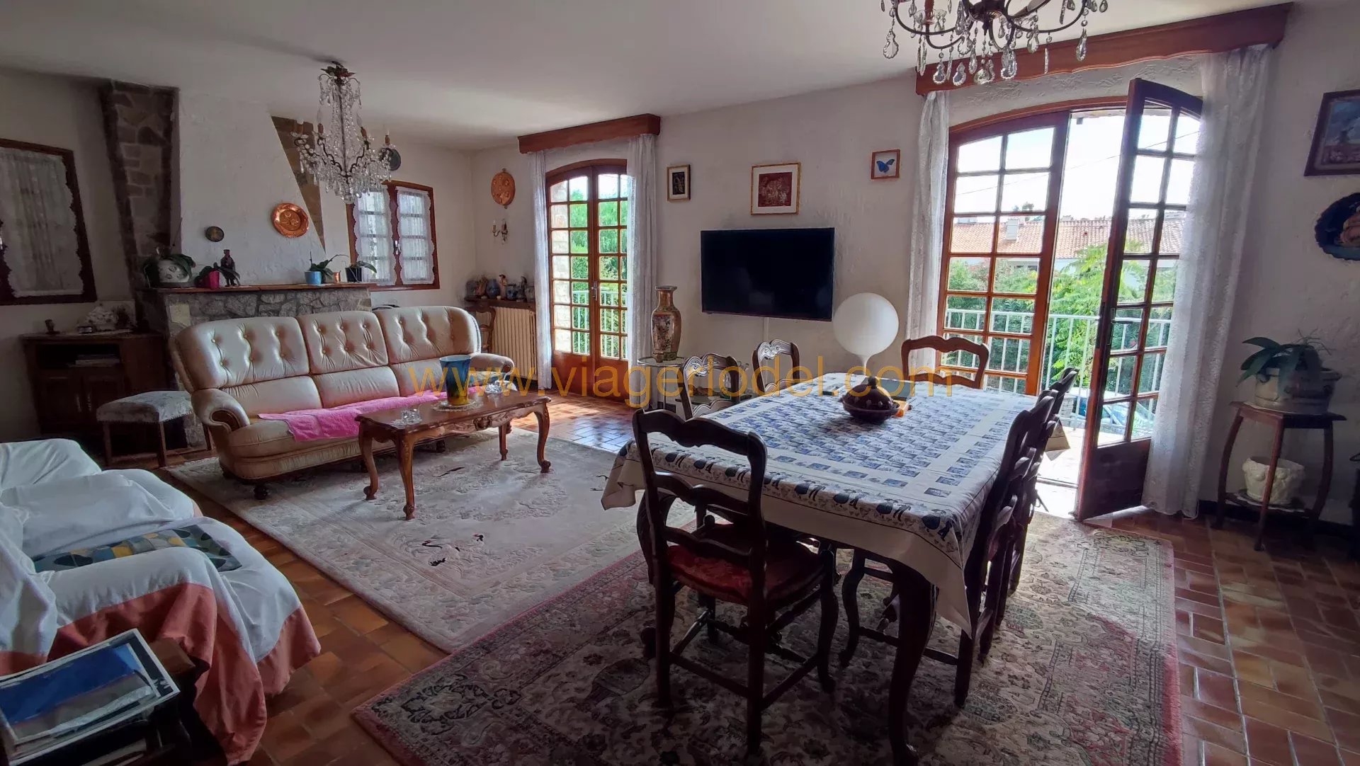 Réf. 9919 - REVENTE DE VIAGER SEMI-OCCUPE - CARQUEIRANNE (83) Réf. 9919 - REVENTE DE VIAGER SEMI-OCCUPE - CARQUEIRANNE (83) Dans le quartier résidentiel recherché « les Pins Penchés », à 150 m de la mer, au fond d’une impasse, au calme absolu, proche tous commerces et commodités (supermarché, pharmacie, boulangerie…), une très agréable et lumineuse MAISON des années 70, de un étage sur rez-de-chaussée, scindée en 2 appartements indépendants. Elle se compose de : Rez-de-chaussée (libre) : • Une entrée avec couloir, • Un séjour Sud donnant sur terrasse jardin, • Une cuisine séparée, • Deux chambres, • Une salle de bain, • Un wc indépendant, • 1 grand garage Chauffage poêle à bois et eau chaude cumulus Etage (occupé) : • Une entrée avec couloir, • Un séjour Sud donnant sur terrasse, • Une cuisine séparée donnant sur terrasse de 12,44 m², • Trois chambres dont deux (Sud) donnant sur terrasse, • Une salle de bains, • Un wc indépendant. Chauffage chaudière mixte fioul ou bois et eau chaude cumulus Sols : Carrelage Superficies : rdc : 90 m² - étage : 100 m² sur terrain de 733 m² NB : Maison bien entretenue, à mettre au goût du jour. Climatisation rdc et étage. Reliée au tout à l’égout. BOUQUET : 695 000 euros HAI + rente : 1 534,47 euros/mois indexée OCCUPE 1 TETE : 94 ans (D) Valeur Vénale : 875 000 euros T.F. : 3 483 euros dont 595 euros d’OM Les informations sur les risques auxquels ce bien est exposé sont disponibles sur le site Géorisques : www.georisques.gouv.fr