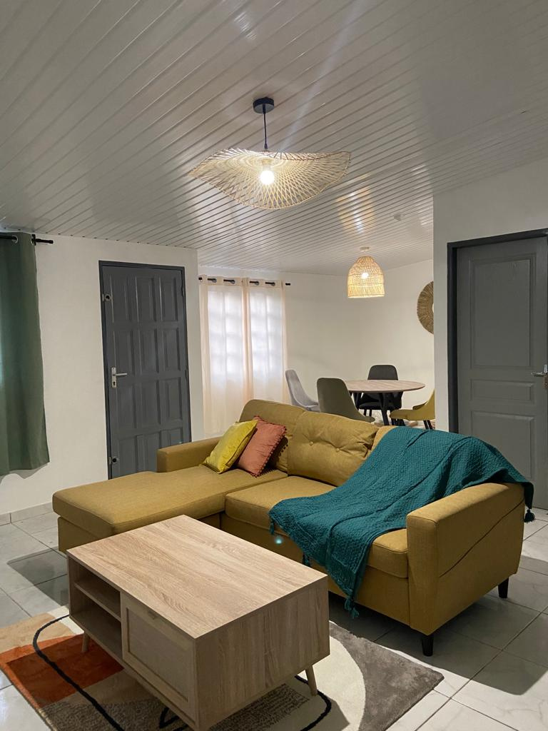 Location d'un appartement T2 meublé coté cour situé avenue MANDELA au centre ville de Cayenne comprenant: un salon séjour climatisé, une cuisine équipée et meublée, une chambre climatisée, une salle de bain avec WC, un balcon