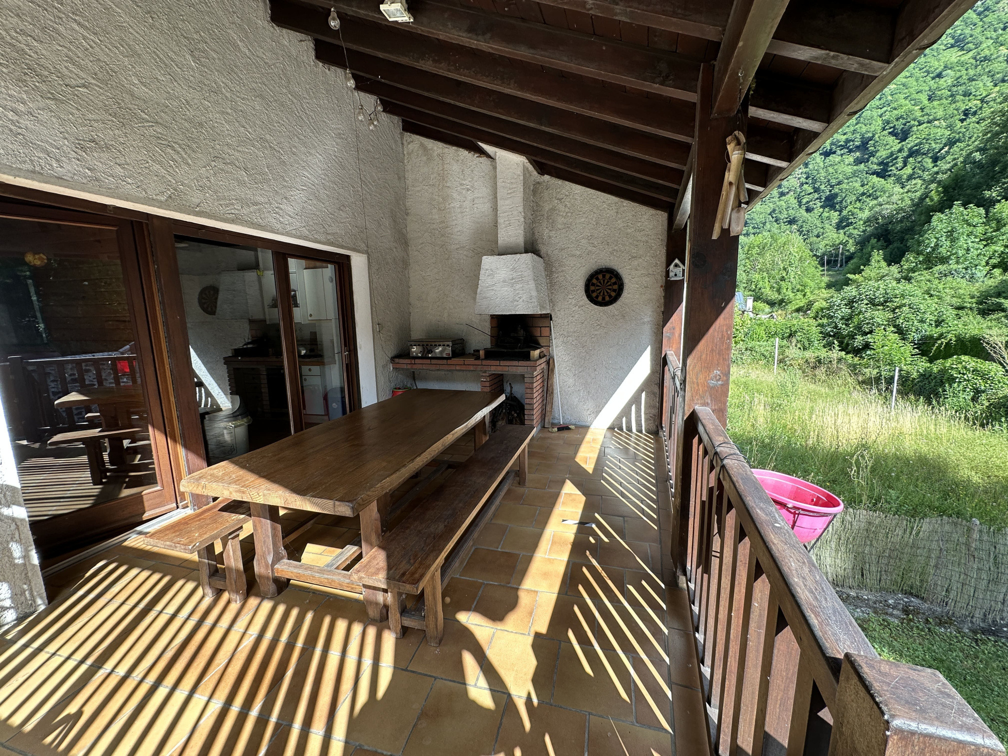 Cette confortable maison de village, à mi-distance entre Oloron Sainte Marie et Jaca répond parfaitement aux critères d'une résidence principale, elle vous permettra aussi d'organiser éventuellement de la location saisonnière comme c'est le cas actuellement. Son rez de chaussée est distribué d'un grand hall d'entrée, d'une chambre dortoir avec double placard penderie, d'un wc indépendant, d'une salle de douche et d'un grand cellier-buanderie-atelier. Cette dernière pièce communique directement avec le joli jardinet en partie emmuré. Le 1er étage s'ouvre sur un vaste séjour salon de 45 m2 avec cheminée ouverte, une cuisine séparée totalement aménagée et équipée avec sa terrasse couverte en continuité et son escalier d'accès au jardinet. Enfin l'espace nuit du deuxième étage décompte deux grandes chambres équipées de placards penderies, un wc indépendant et une salle de bains. Le grand palier peut être organiser en pièce de détente ou bureau ou couchage complémentaire. La qualité de restauration de ce bien, son état d'entretien ainsi que son environnement calme et sans vis à vis dégagent une atmosphère très agréable que vous apprécierez sans aucun doute ! A 9 km des villages de Bedous et Accous, offrant toutes les commodités commerciales dont un super marché avec station essence ainsi que banques, pôle médical, boulangerie, épicerie, boucherie charcuterie, coiffeur, librairie papeterie journaux et pharmacie.