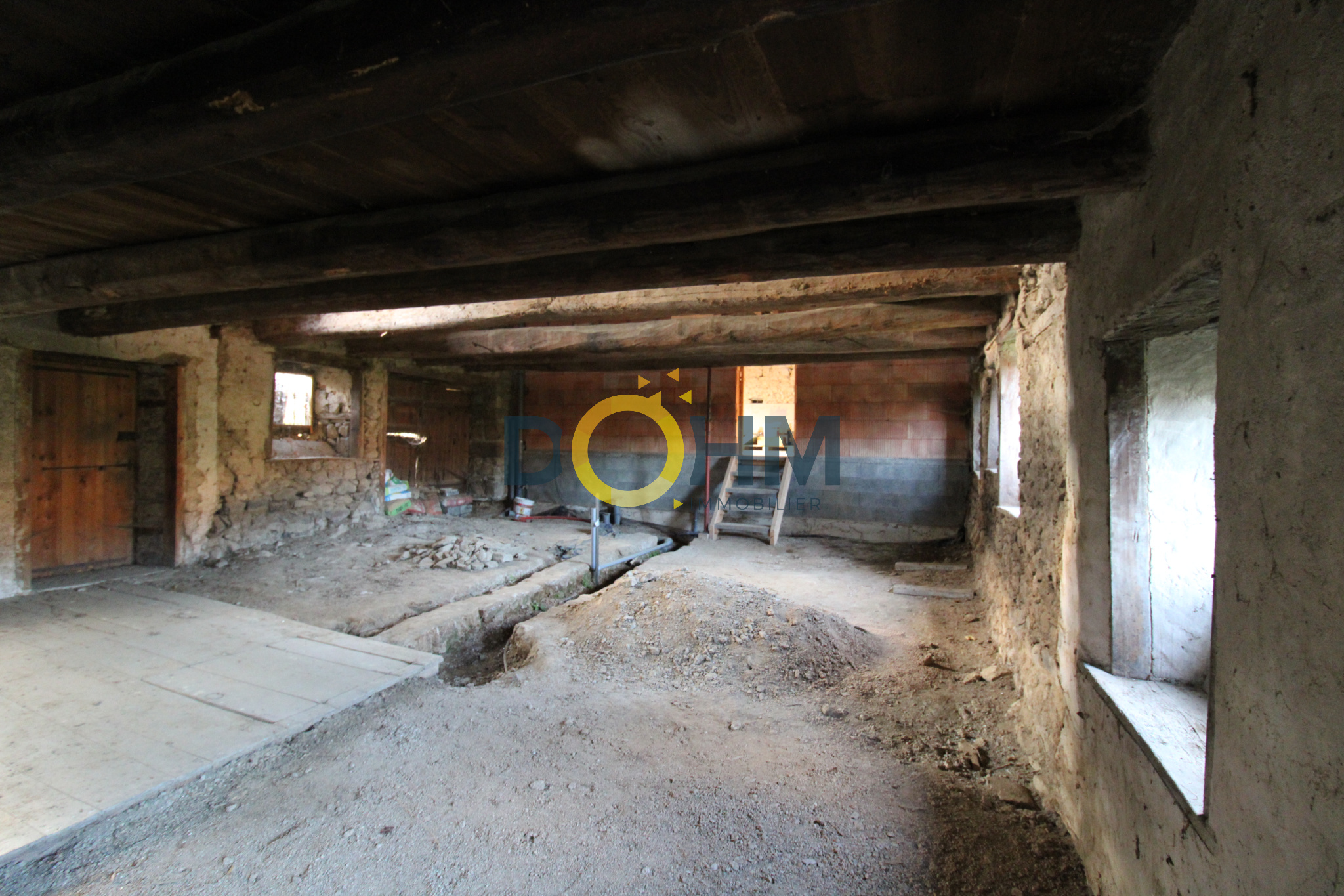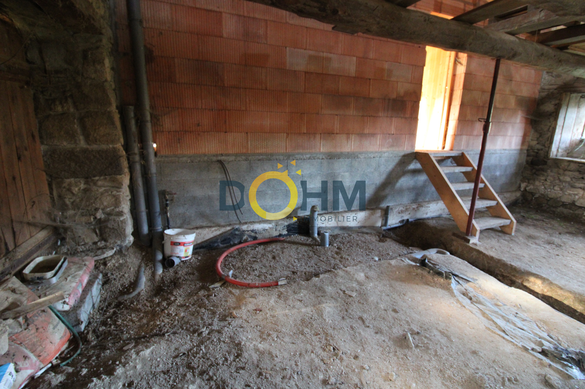 Enorme potentiel d'aménagement d'environ 80m2 au sol et possibilité de faire deux étages, avec une belle cheminée et une cave.
