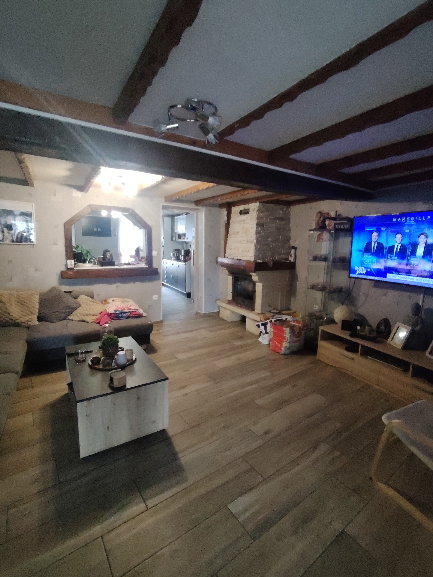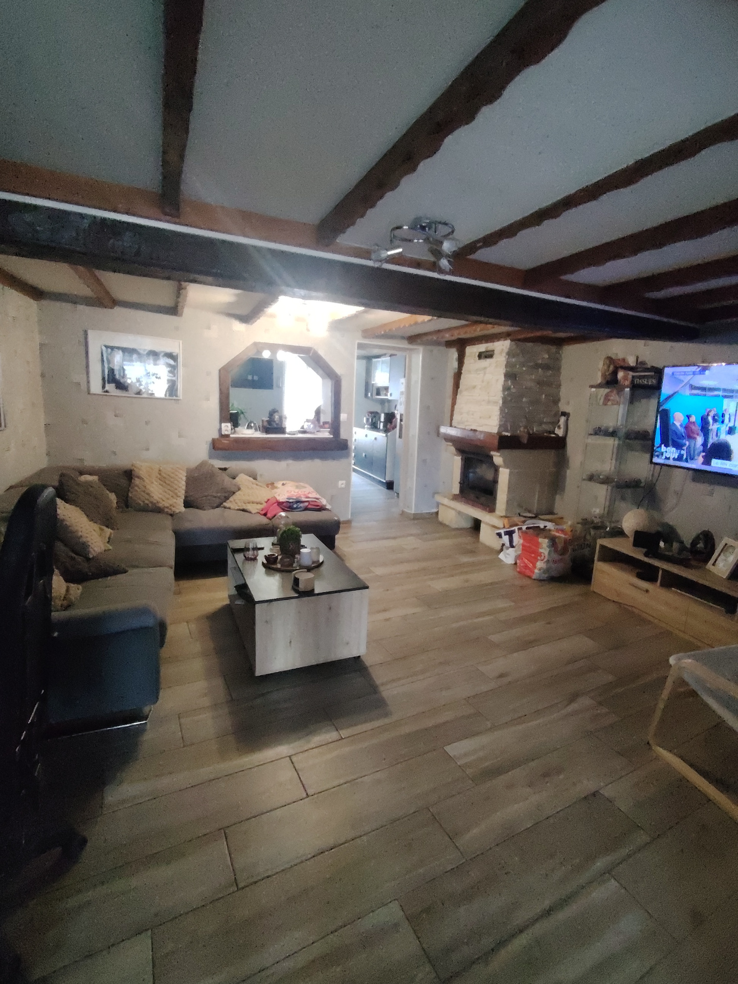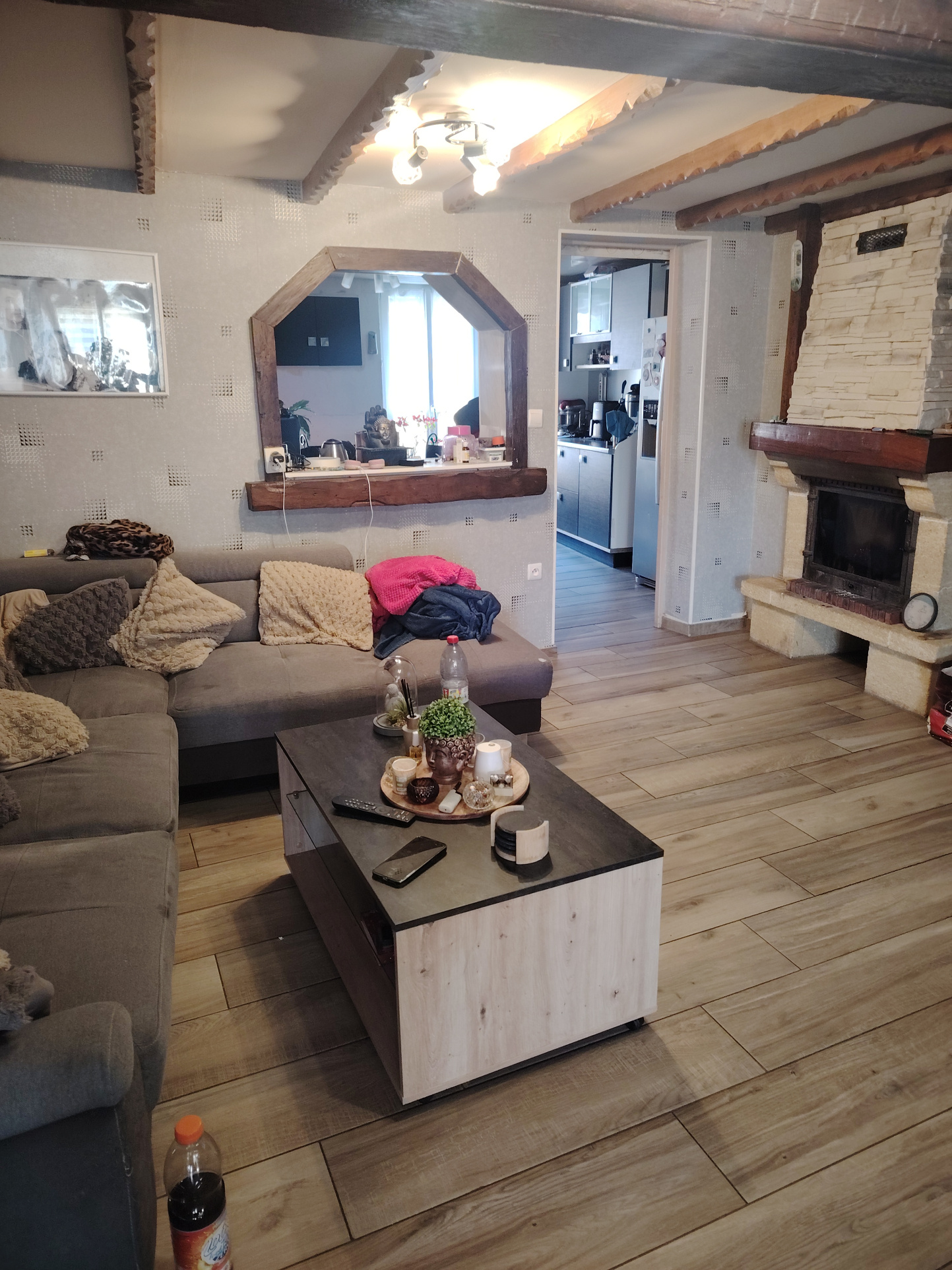 R1 cuisine entièrement équipée donnant sur salon avec insert à bois ,séjour donnant sur un petit balcon vue sur jardin