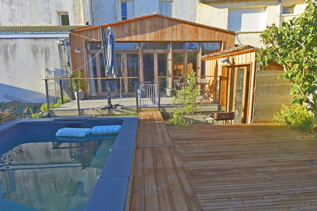 Cozes, Jolie maison bourgeoise avec piscine d'environ 275 m² sur une parcelle close d'environ 290 m². Cet immeuble bâti sur 3 niveaux, compte : 6 chambres, 3 bureaux, 3 salles d'eau, 2 salles de bain, une très grande cuisine dînatoire, un vaste salon séjour baigné de lumière donnant sur la piscine. Le bien a totalement été rénové et possède un double vitrage total. Il a été décoré avec goût et pourvu de matériaux nobles. La maison se situe dans une ville à seulement 10 km des plages avec tous les commerces, écoles, collèges et administrations à pied. Vous avez la possibilité en sus d'acquérir un bâtiment de 200 m² en devenir, avec 3 garages, donnant à cet ensemble immobilier un joli potentiel. Les informations sur les risques auxquels ce bien est exposé sont disponibles sur le site Géorisques.