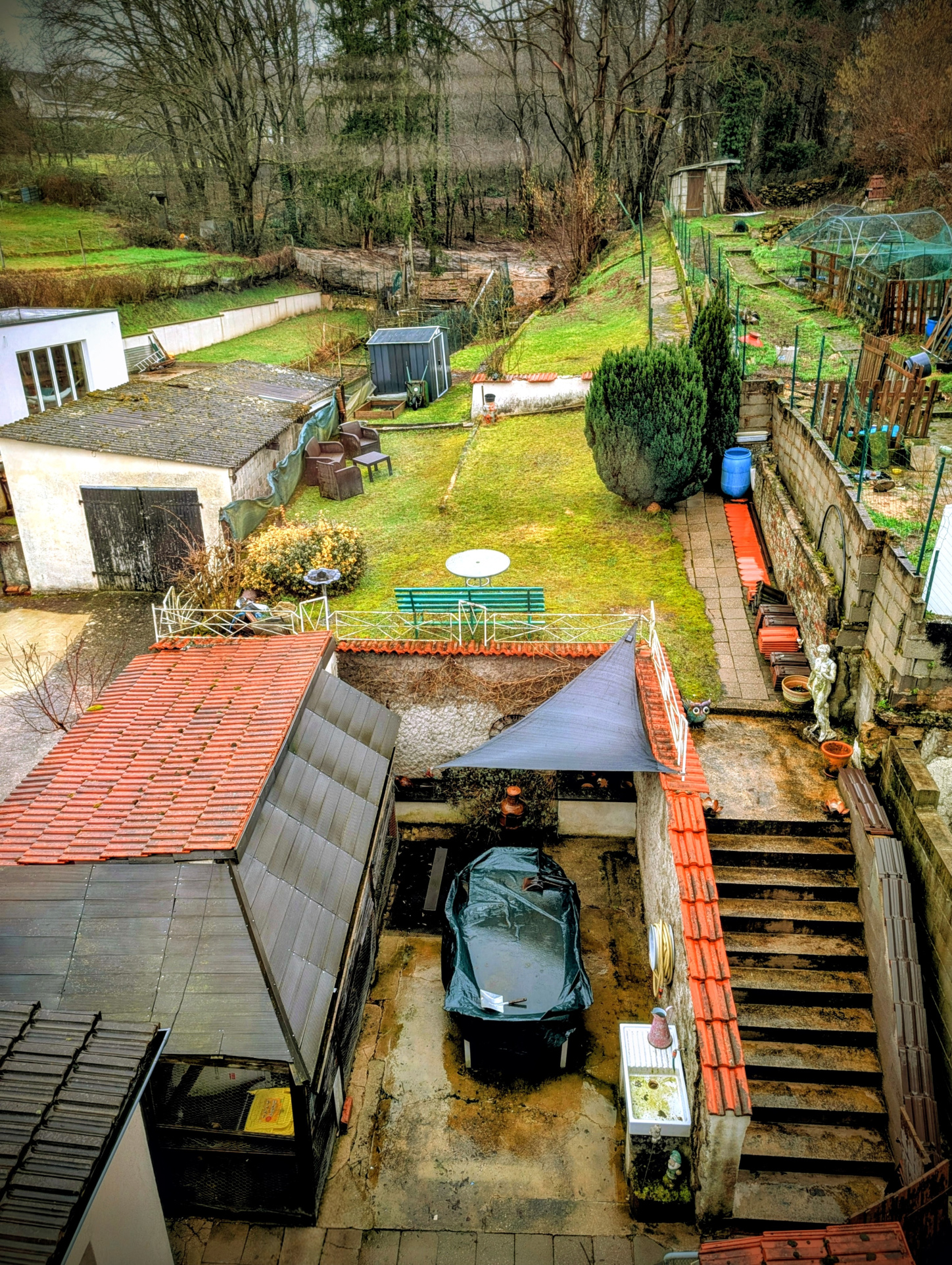 Stationnement privatif devant la maison, parking en face, petite dépendance et cabanon de jardin.