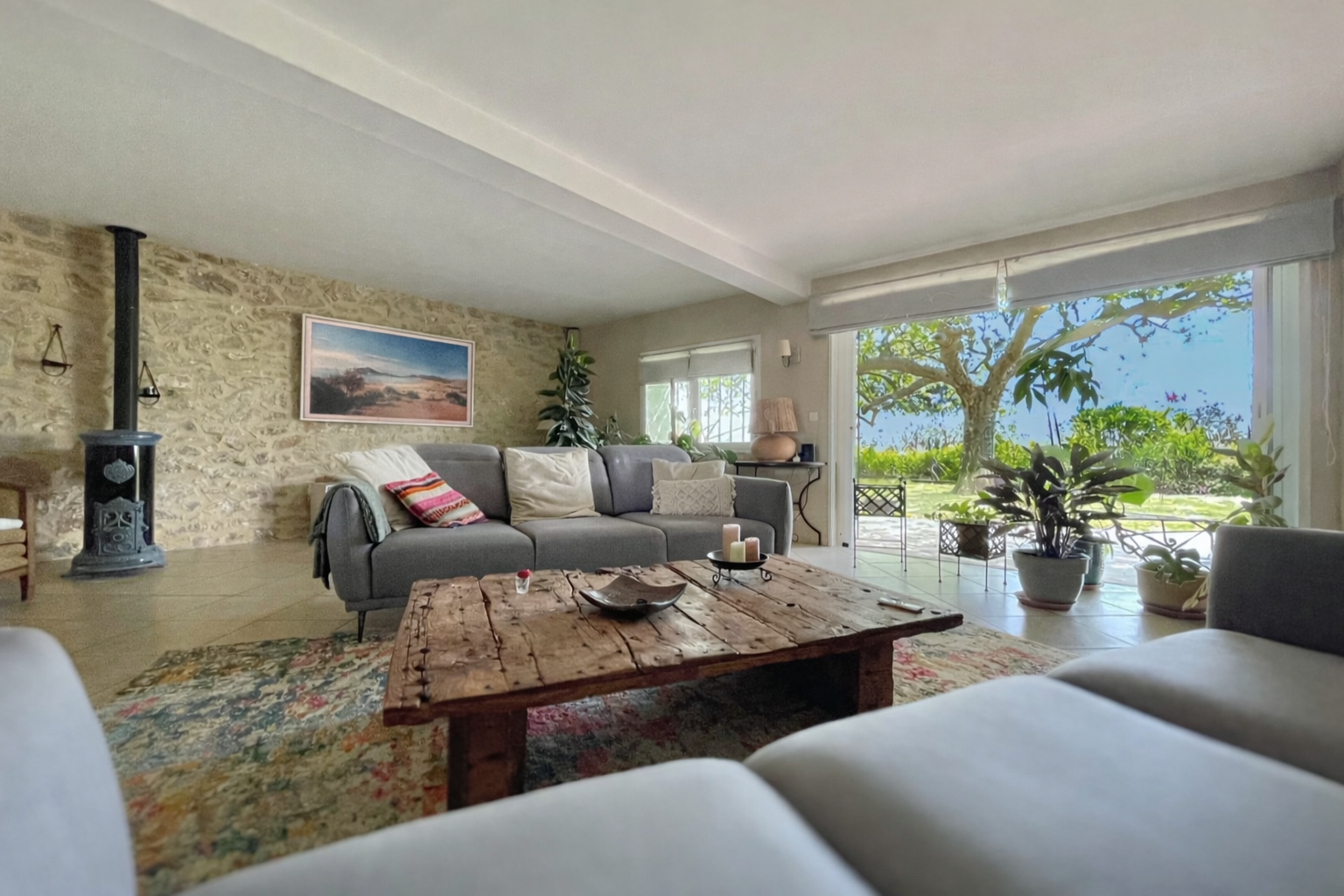 L'environnement est à la fois paisible et bucolique. La terrasse au sud à l'ombre du rosier grimpant, est l'endroit idyllique pour profiter des douces journées provençales. Les pièces de vie offrent également une belle perspective sur le jardin et la nature. La cuisine meublée et équipée est un endroit convivial pour diner en famille ou entre amis. Le grand salon séjour, pièce maîtresse de ce mas de caractère, allie savamment la luminosité, les volumes généreux et le charme des matériaux nobles. Pour votre confort, une arrière cuisine, une buanderie, une suite parentale, un WC séparé, mais également une espace jacuzzi complètent ce niveau.