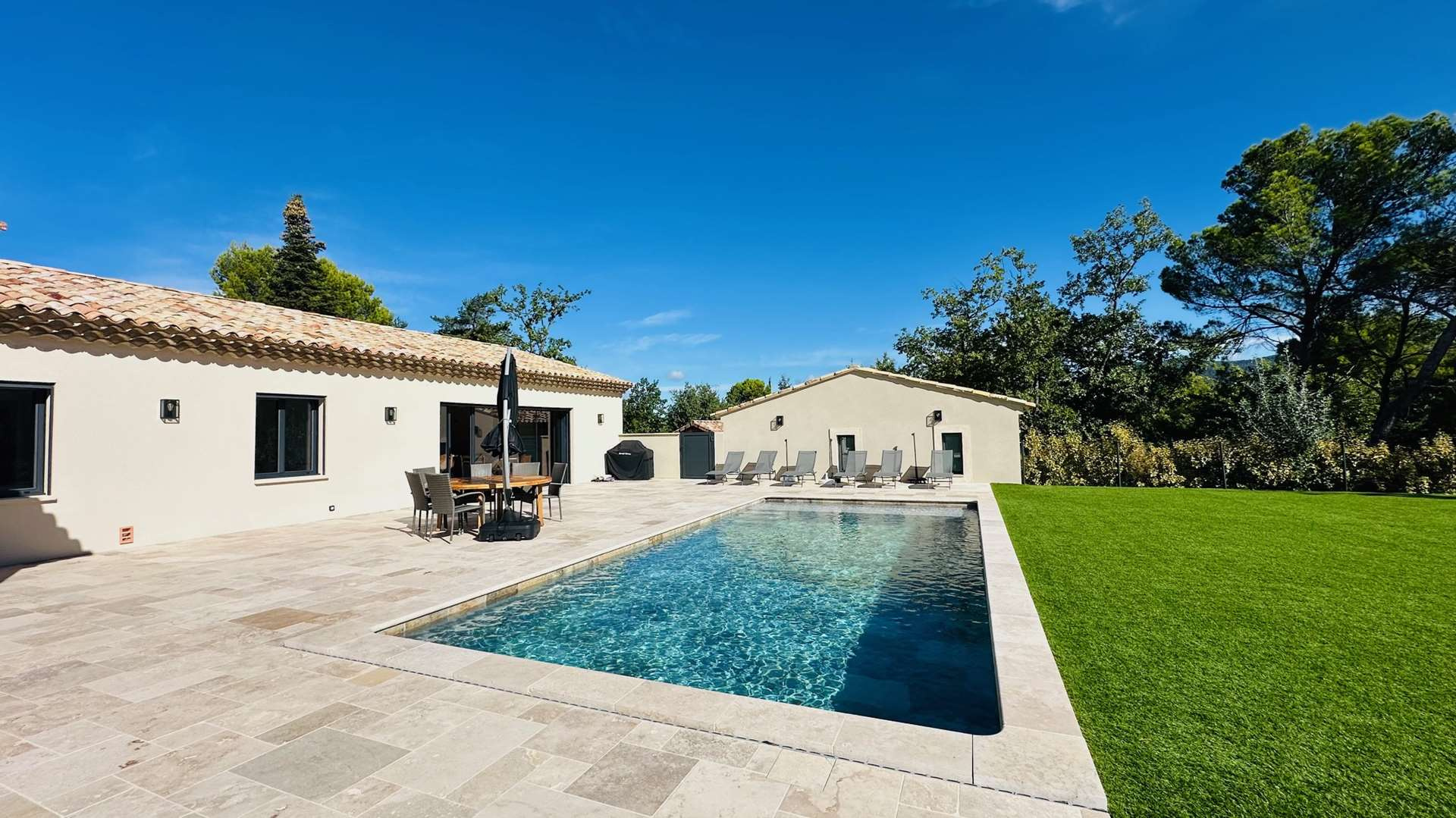 Dès l'entrée, vous serez conquis par une vaste pièce de vie traversante ouvrant sur une vaste terrasse le jardin et la piscine avec toile de fond le Mont Ventoux et la pinède.