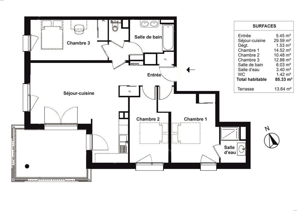 Surface (m²) 85.33 Année de construction 2025 Chambres 3 chambres Salles de bain 2 salles de bain
