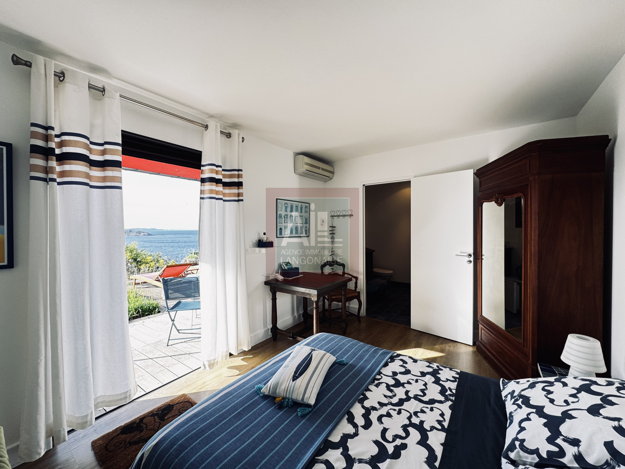 Située sur la très recherchée Île du Levant, entre le port et le coeur du village, cette maison méditerranéenne bénéficie d'un emplacement privilégié, accessible exclusivement par bateau, dans un environnement naturel préservé et entièrement piéton. À proximité immédiate des plages, elle offre un art de vivre rare entre intimité, mer et nature. Édifiée sur une parcelle de 1 600 m2 sans aucun vis-à-vis, la propriété développe 126 m2 habitables et jouit d'une vue mer panoramique exceptionnelle sur la Méditerranée et l'île de Porcro, visible depuis chaque pièce. La maison se compose : Au niveau rez-de-chaussée : deux chambres avec chacune toilette et salle de douche, donnant sur une terrasse avec accès direct à la piscine de 10m2, offrant un fort potentiel de chambres d'hôtes ou un accueil des invités en toute autonomie.