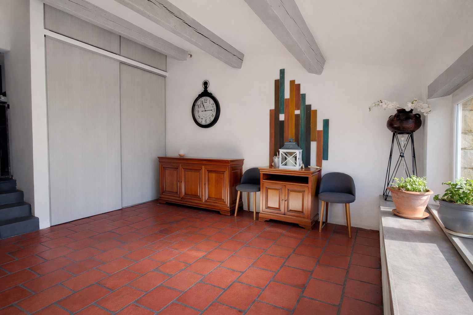 Elle offre de spacieux séjour de 60m2 avec cheminée ainsi que 3 chambres dont une suite parentale avec salle d'eau élégante.