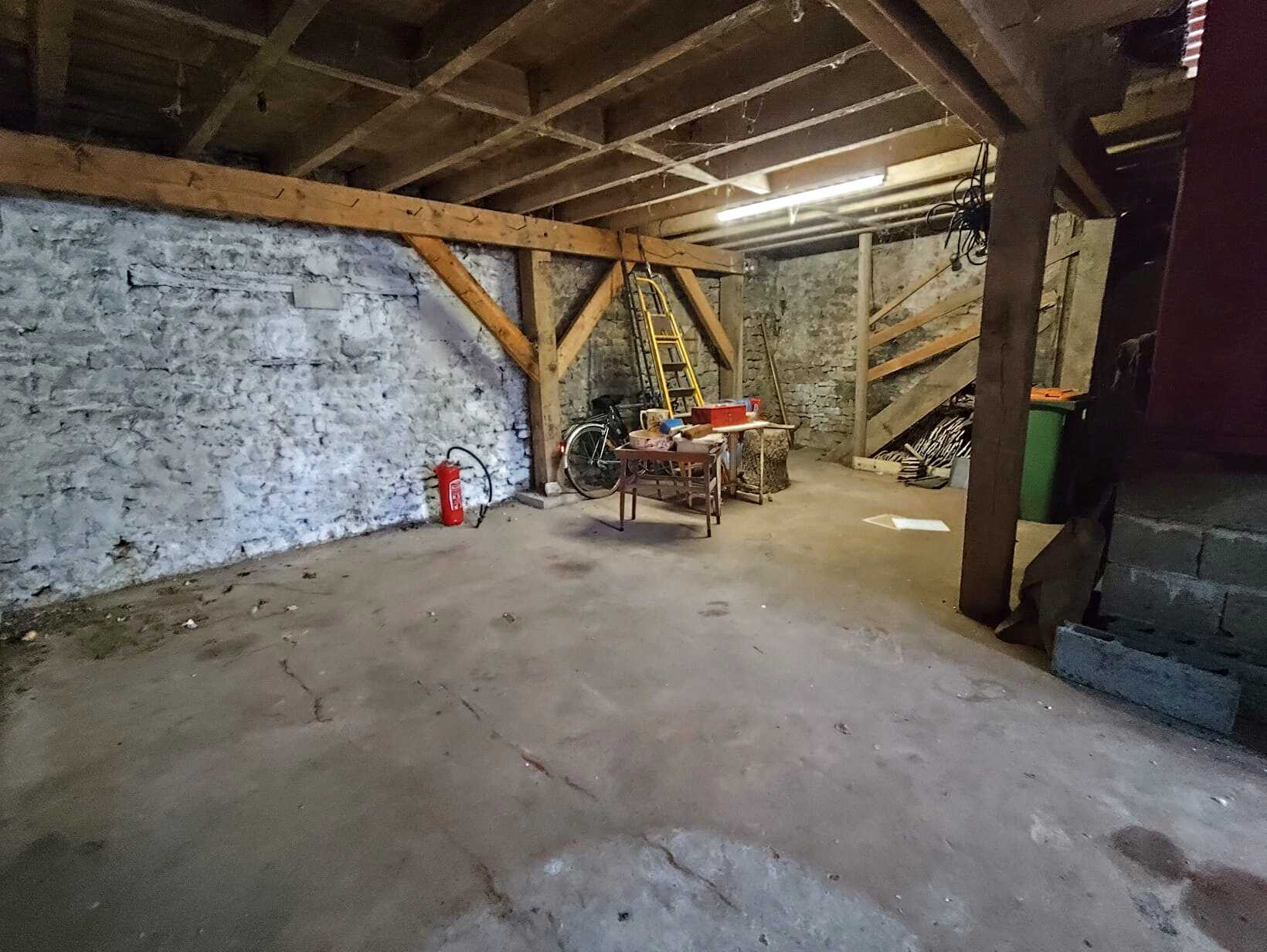 Elle dispose : D'un grand garage de 83 m2 avec cave, atelier et pièce pouvant servir de chambre à l'étage.