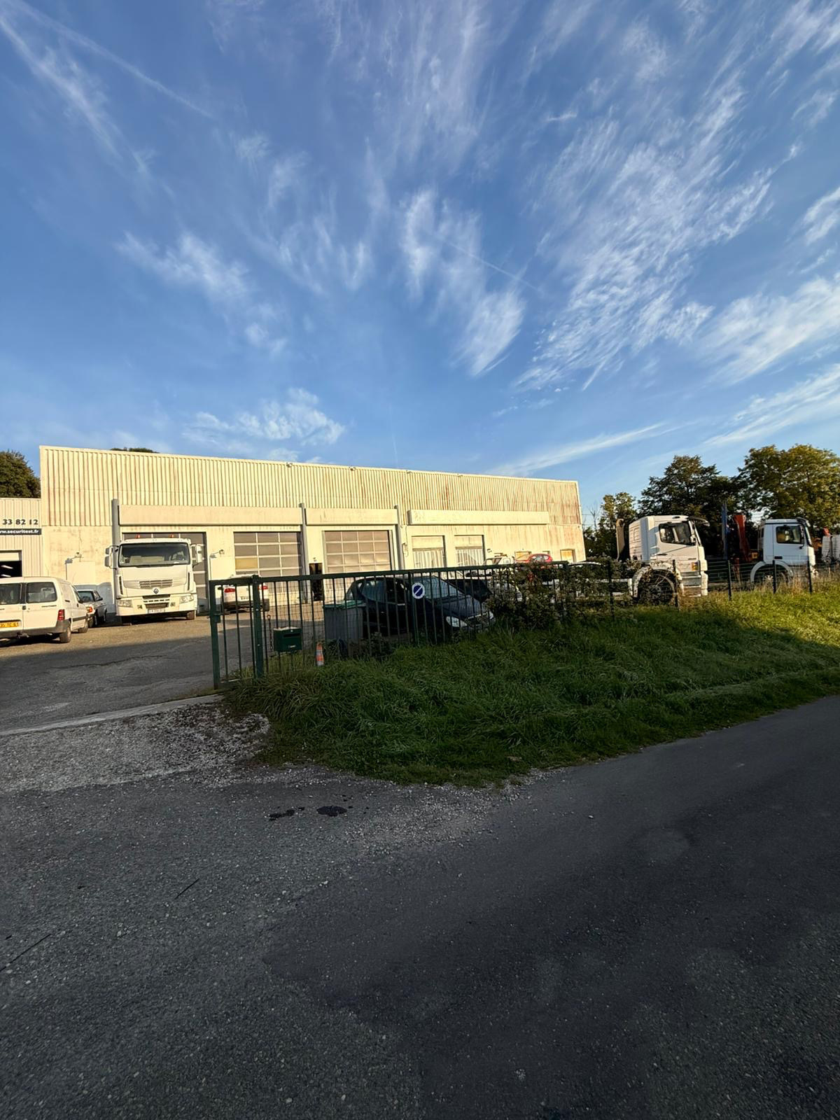 L'ensemble est implanté sur un grand terrain clos et facilement accessible, idéal pour stationnement, stockage ou extension.