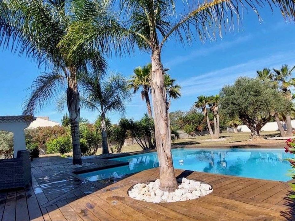 À deux pas de la mer, au cœur de Marseillan Plage, découvrez cette propriété exceptionnelle édifiée sur un terrain clos et arboré d’environ 3 000 m², avec piscine, terrasse et garage.