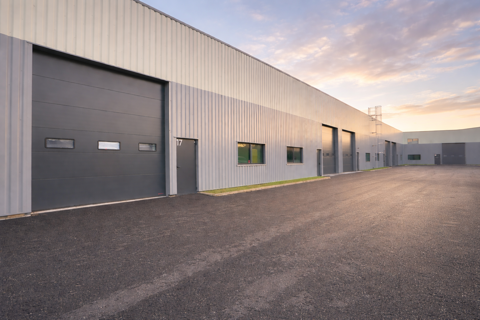 Sécurité : désenfumage par exutoires + issue de secours.