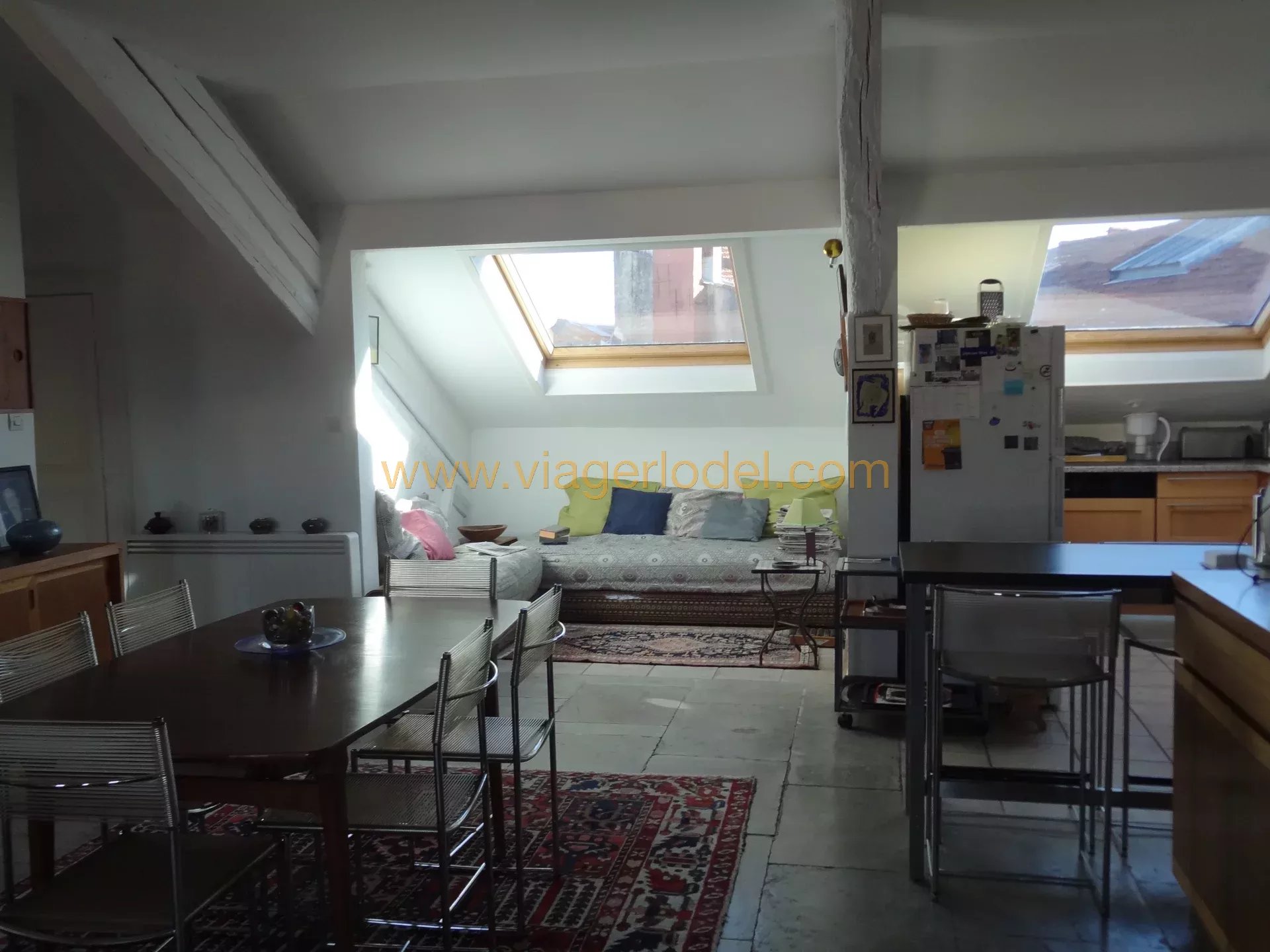 Réf. 9772 - VIAGER OCCUPE SANS RENTE - MONTPELLIER (34) Réf. 9772 - VIAGER OCCUPE SANS RENTE - MONTPELLIER (34) CENTRE-VILLE A proximité immédiate de toutes infrastructures utiles, commerces et commodités, dans un immeuble Haussmannien, un grand et agréable APPARTEMENT traversant de 4/5 PIECES situé au 5ème et dernier étage avec ascenseur. Il se compose : • Un hall d’entrée, • Un bureau et un atelier, • Une cuisine ouverte, • Un salon / salle à manger, • Deux chambres, • Une salle d’eau avec wc, • Un w.c. indépendant, • Une buanderie. Sols : Dalles en pierre, carrelages et parquet bois (chêne) Superficie habitable : 142.29 m² Chauffage radiateurs électriques, eau chaude cumulus N.B. : Appartement bien entretenu, double vitrage, climatisation pièce à vivre, cuisine et chambre 2. Porte blindée. COMPTANT: 480 000 euros HAI sans rente OCCUPE 2 TETES : 86 ans (M) et 83 ans (D) Valeur Vénale : 700 000 euros T.F. : 1 844 euros dont 344 euros d’OM Charges : 290 euros / mois RCP du 19/03/1981 - Nombre total de lots : 25 dont 14 principaux Les informations sur les risques auxquels ce bien est exposé sont disponibles sur le site Géorisques : www.georisques.gouv.fr