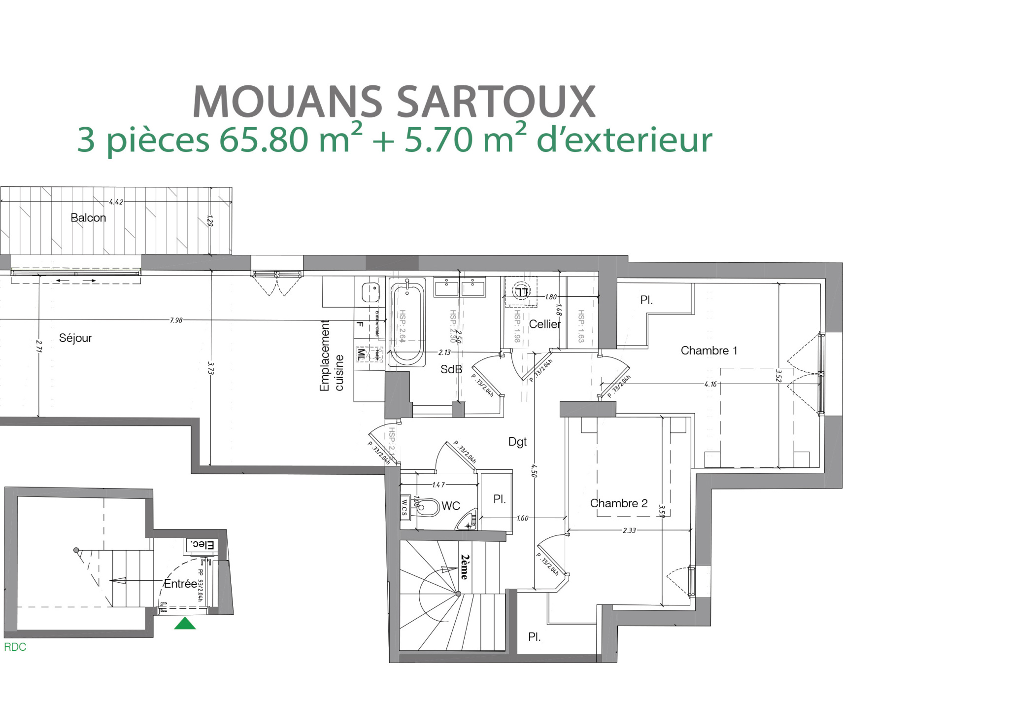 - Libellé : Mouans sartoux DERNIER ETAGE - T3 - 65.80 m2 habitable + 5.7
