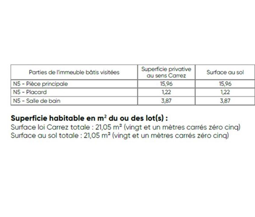 Surface (m²) 21 Chambres 0 chambre Salles de bain 1 salle de bain Prix au m² 2.619 €