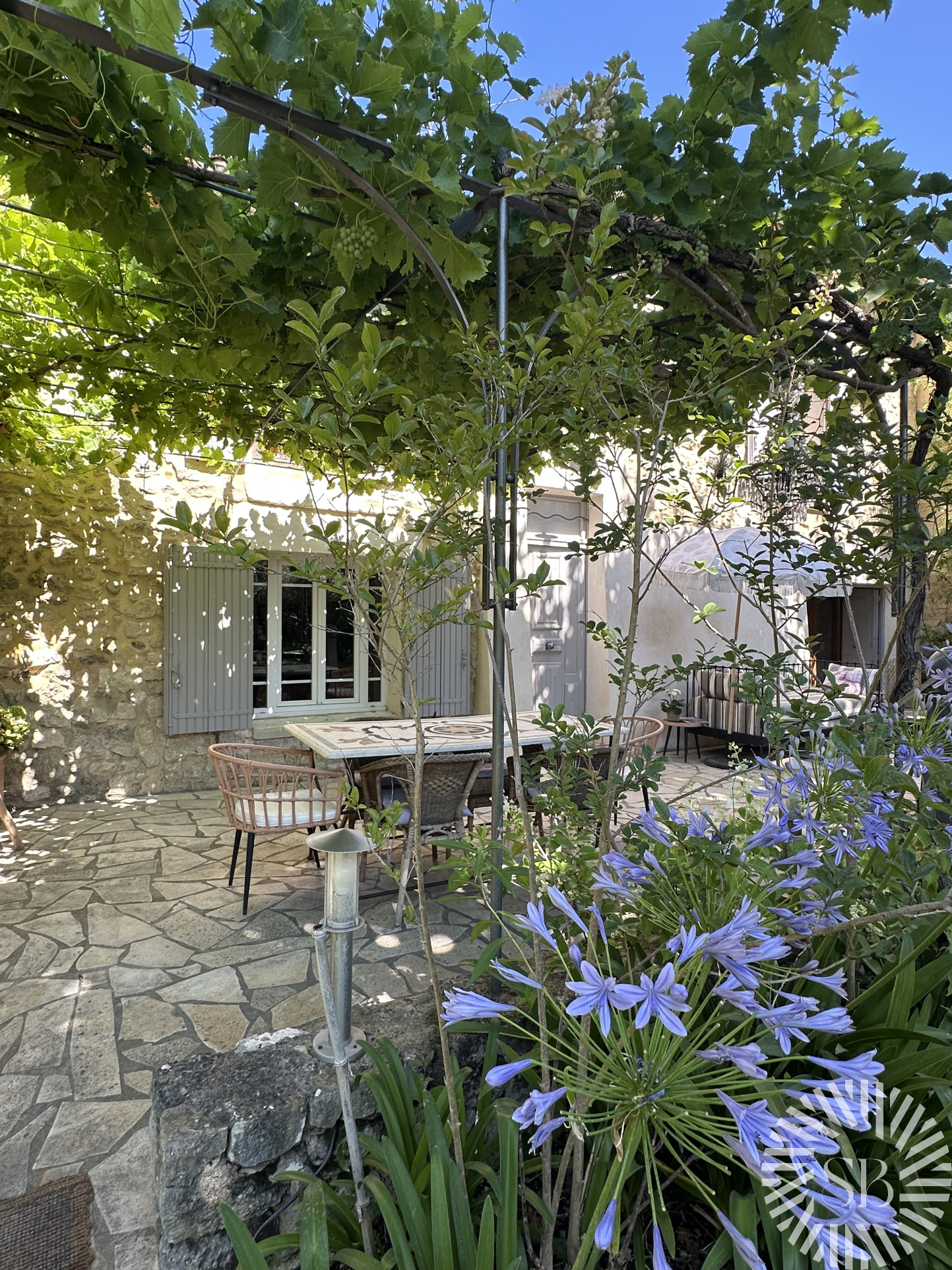 Mas historique rénové avec goût offrant une belle surface de plus de 185m2 avec un jardin de 943m2 clos et arboré, sans vis à vis.