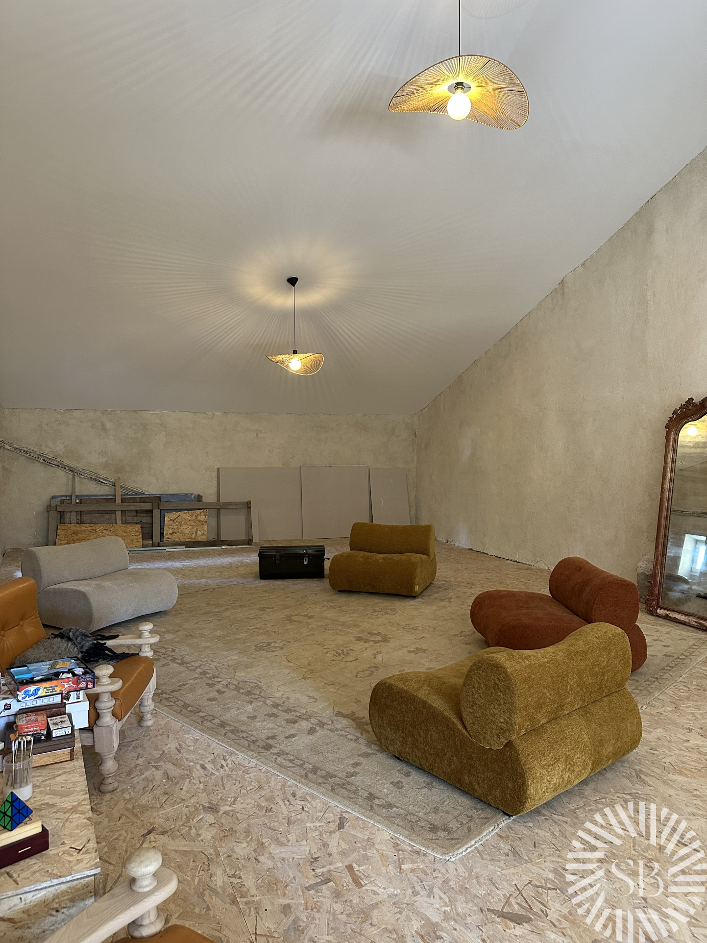 Le bonus : Un grand garage de 60m2 (avec sa buanderie 8 m2), doublé à l'étage d'un bel espace de 87m2 déjà isolé avec accès depuis la partie nuit ou directement par le rez de chaussée.