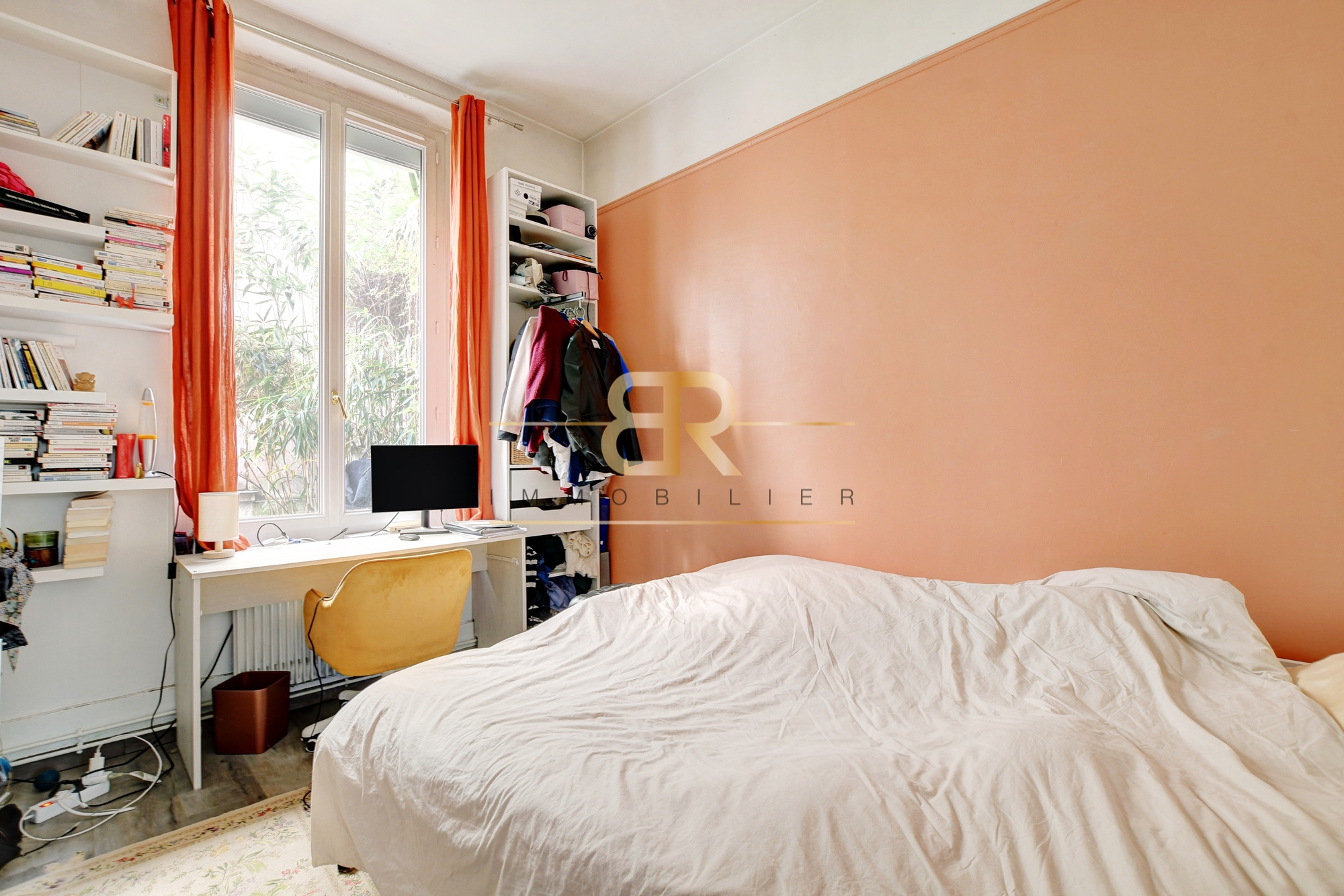 Dans un immeuble en pierre de taille, en fond de copropriété, appartement rare de 3 pièces avec magnifique hauteur sous pladond et terrasse de 26 m2 en jouissance exclusive, attenante au séjour avec cuisine ouverte sur le séjour, toute équipée, deux belles chambres dont une avec mezzanine, une belle salle d'eau avec WC. Appartement traversant sur 2 jardins. Une cave complète ce bien. Lumière avec une exposition principale Ouest, et calme au rendez vous. Appartement distribué en étoile avec très belle distribution des volumes. Charme de l'ancien avec deux cheminées.