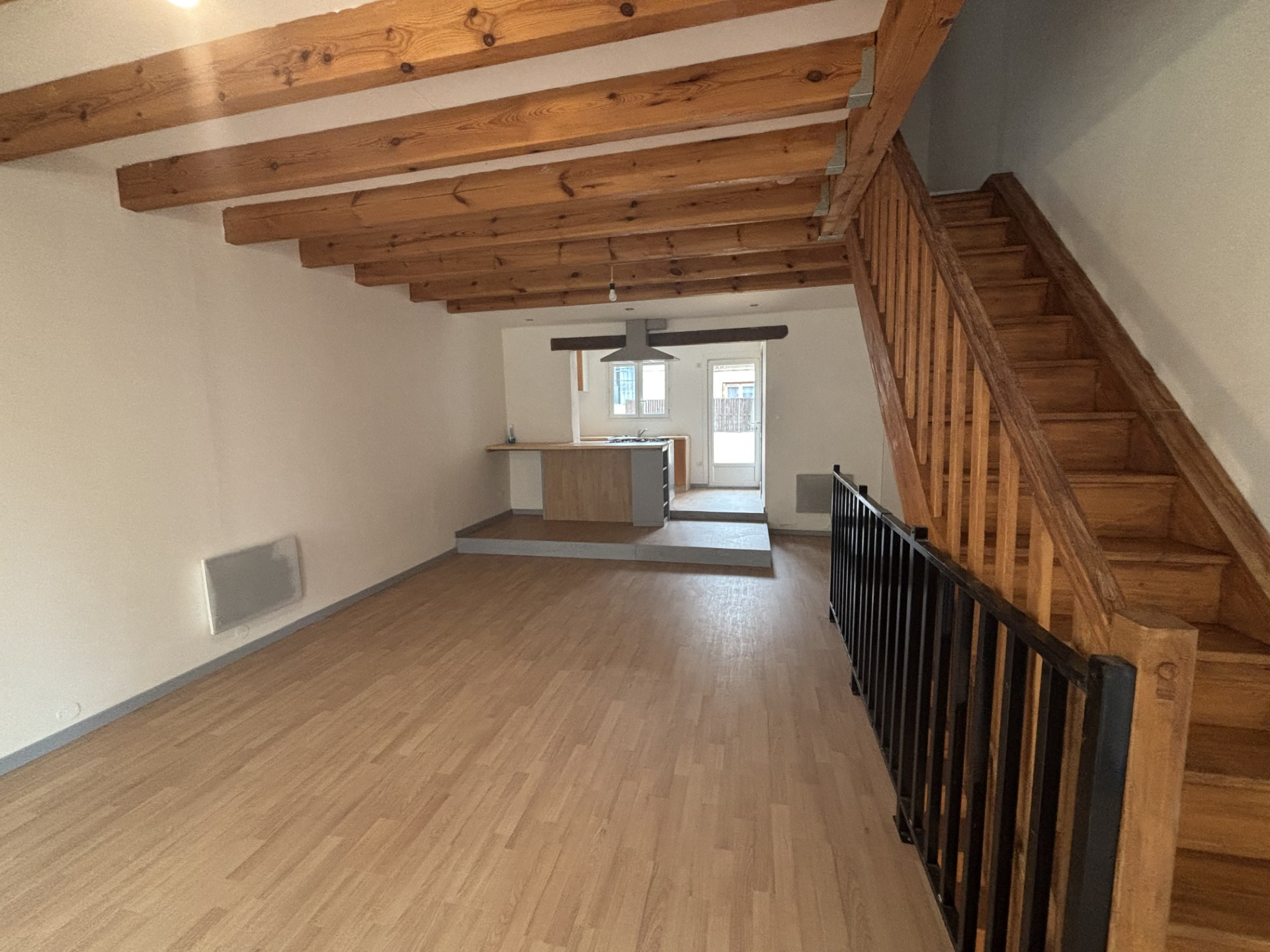 A Perpignan, venez découvrir cette maison de ville, en deux faces, entièrement rénovée. Dans une ruelle calme et sur trois niveaux, cette maison offre en rez-de-chaussée : une chambre, une salle d'eau avec WC, une pièce pouvant servir de chambre, dressing ou bureau ainsi qu'une buanderie attenante au garage. Au premier étage, une grande pièce de vie lumineuse et traversante, avec cuisine aménagée, s'ouvre sur une terrasse, parfaite pour vos repas en extérieur. Vous y trouverez également, une salle d'eau avec WC. Enfin au deuxième étage, une grande chambre et une deuxième terrasse complètent le bien. Garage de plus de 20m2 avec porte motorisée. Double vitrage. Climatisation.