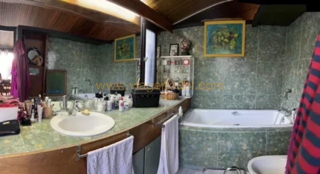 Réf. annonce : 9619 - VIAGER OCCUPE SANS RENTE - PERPIGNAN (66) Réf. annonce : 9619 - VENTE AVEC RESERVE DU DROIT D’USAGE ET D’HABITATION PERPIGNAN (66) Excellente situation ! A proximité immédiate du centre-ville et de toutes ses commodités (commerces, écoles, collège, aéroport, tous soins médicaux) et à moins de 20 min. des plages de Canet en Roussillon et 30 min. de la frontière Espagnole, une très belle VILLA sur 4 niveaux construite en 1980 sur un TERRAIN plat paysagé et arboré entièrement clos. Elle se compose : AU REZ DE CHAUSSÉE : une entrée, un séjour sur TERRASSE, une salle à manger, une cuisine aménagée et un w.c. indépendant. AU 1ER ÉTAGE : une chambre avec placards, un bureau avec placards et une salle de bains avec w.c. AU 2ÈME ÉTAGE : une suite parentale sur BALCON avec dressing et salle d’eau avec w.c., une chambre avec placard sur BALCON et un w.c. indépendant. AU SOUS-SOL : une chaufferie au fuel avec cuve enterrée, une cave à vin, une buanderie et un atelier. Sols : beaux parquets et carrelages Superficie : 178,13 m² sur un TERRAIN de 791 m² Chauffage électrique et fuel complété par climatisation réversible, eau chaude par cumulus. • Un GARAGE double. • Un PARKING extérieur (4 voitures). N.B. : Agréable maison parfaitement entretenue, avec un SPA sous une serre dans le jardin, Panneaux photovoltaïques. Accès aisés aux grands axes routiers. Reliée au tout à l’égout. COMPTANT : 372 500 euros HAI sans rente OCCUPE 1 TETE : 85 ans (D) Valeur Vénale : 500 000 euros Les informations sur les risques auxquels ce bien est exposé sont disponibles sur le site Géorisques : www.georisques.gouv.fr T.F. : 3 056 euros