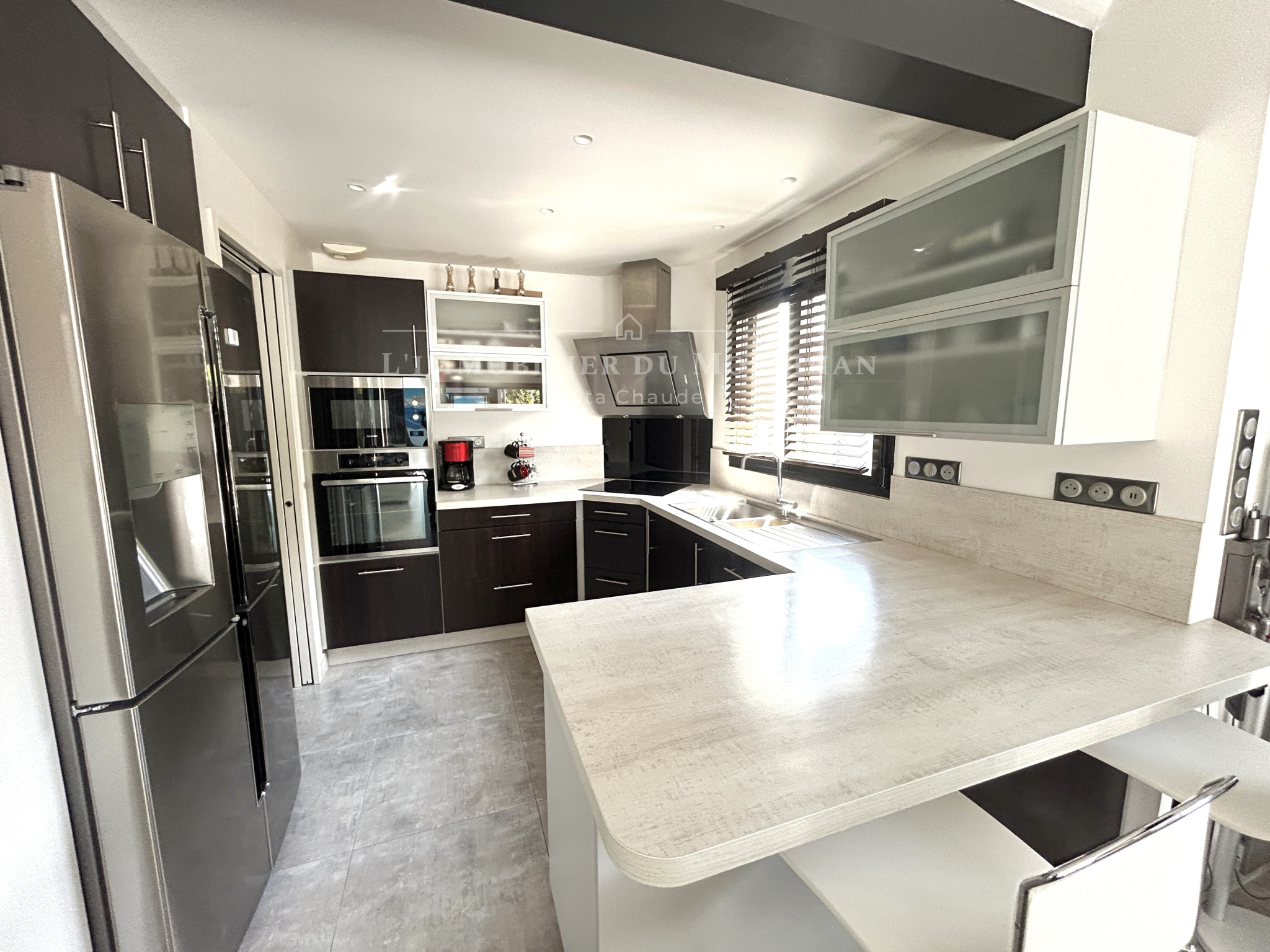 Dès l'entrée, vous serez séduit par les volumes généreux et la conception résolument tournée vers la lumière. La pièce de vie principale, élégante et spacieuse, accueille une cuisine ouverte baignée de lumière grâce à de larges baies vitrées. Deux terrasses idéalement exposées à l'Est et à l'Ouest prolongent cet espace, créant une parfaite harmonie entre intérieur et extérieur.