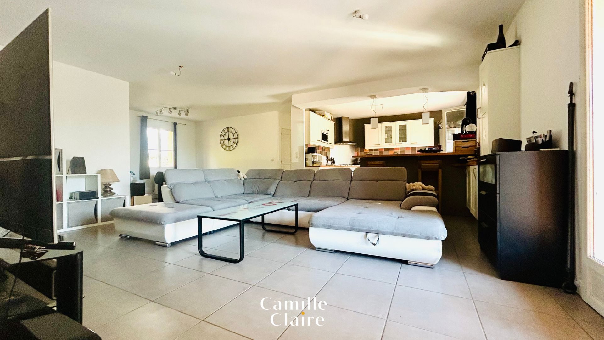 Maison type 5 de plain-pied d'une surface utile d'environ 133 m2 ( 120 +15 m2 de studio indépendant ). Maison principale de qualité avec des beaux volumes, hall d'entrée avec rangements divers, pièce de vie 50 m2 avec cuisine ouverte équipée.