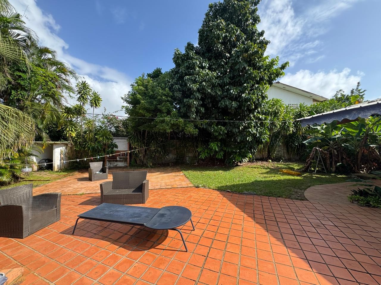 A l'extérieux , profitez d'une grande terasse , une piscine enterrée et d'un carbet de 25 m2, idéal pour vos moments de détente. Garage fermé et terrain agréable complètent ce bien.