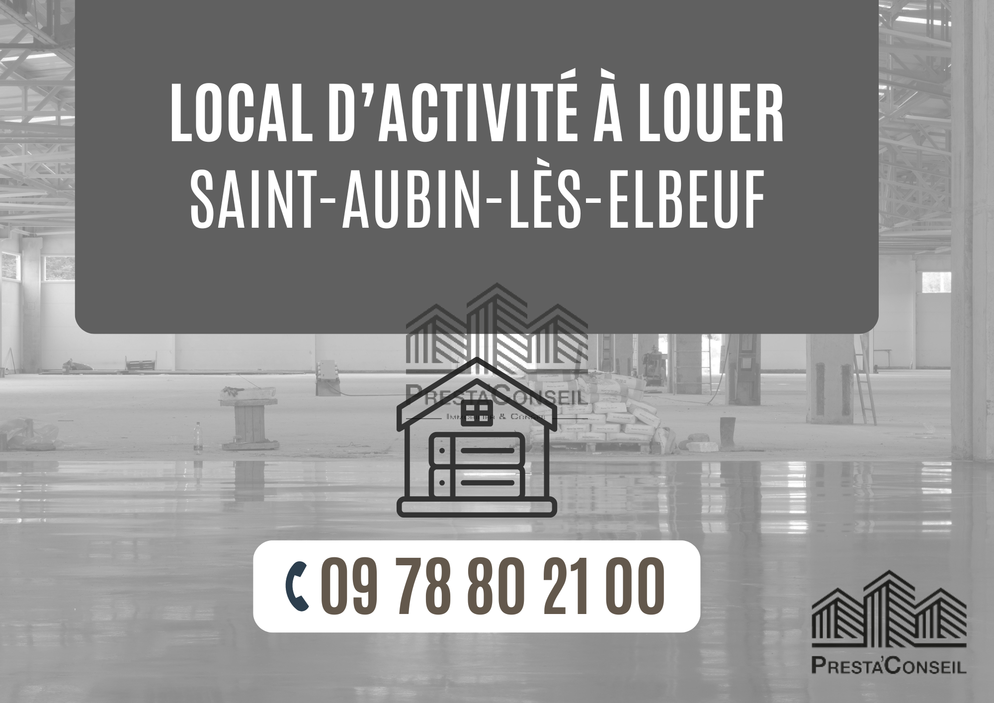 En plein coeur de Saint-Aubin-lès-Elbeuf, sur un axe très fréquenté, votre agence PRESTA'CONSEIL vous propose à la location ce spacieux local d'activité !