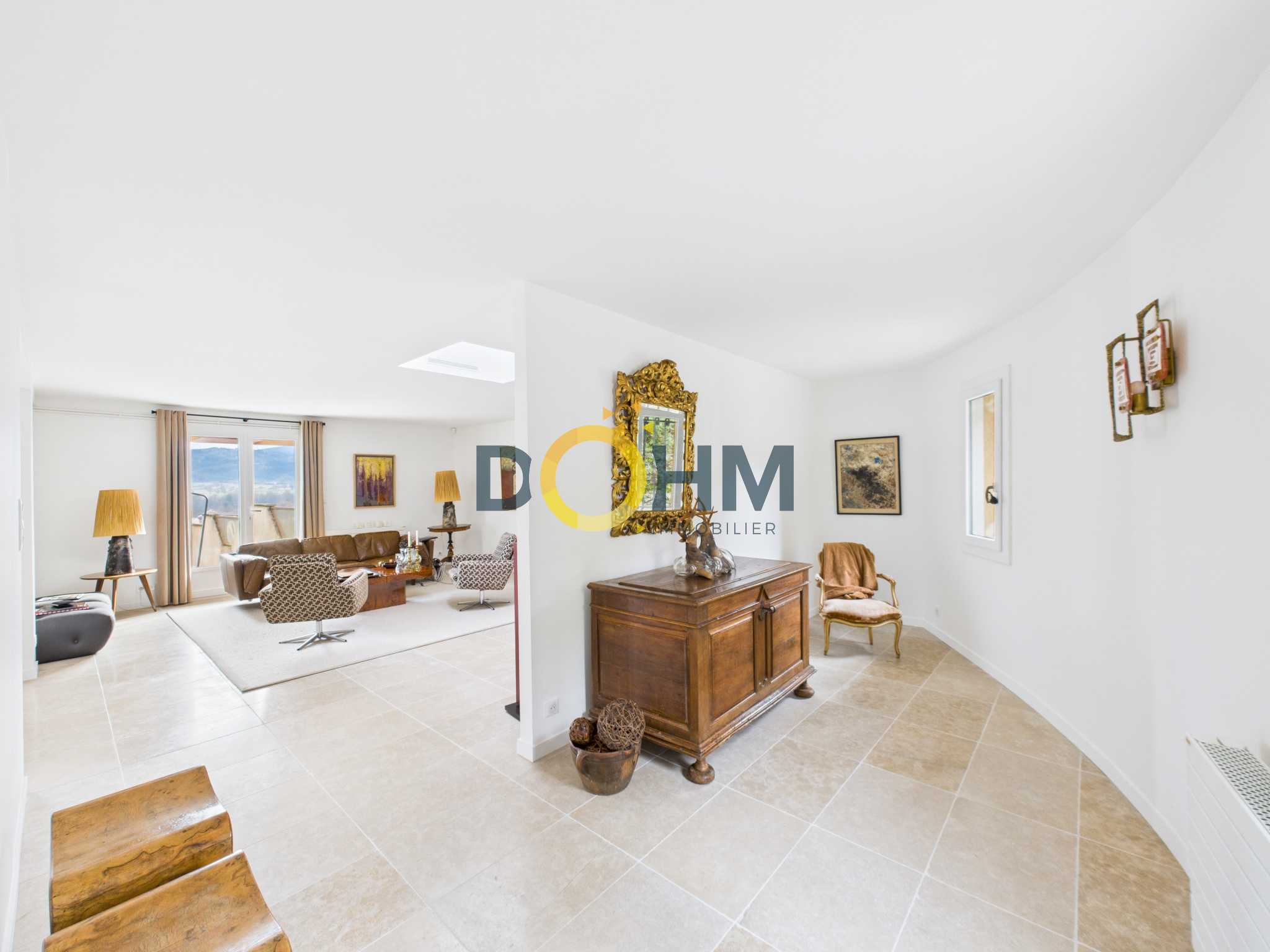 En demi niveau un beau hall accédant à une terrasse et à la suite parentale composée de 2 salles d'eau et un dressing.