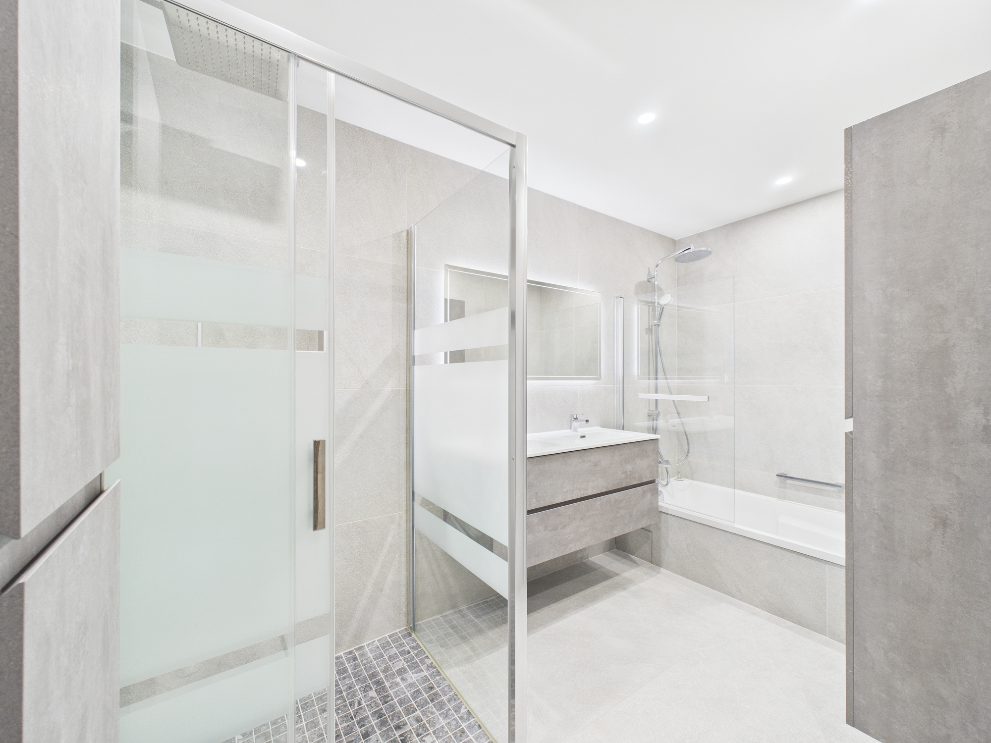 - 3 grandes chambres, toutes avec placards aménagés, dont une de 17m2 - salle de bains moderne avec baignoire et douche à l'italienne - Buanderie - WC indépendant