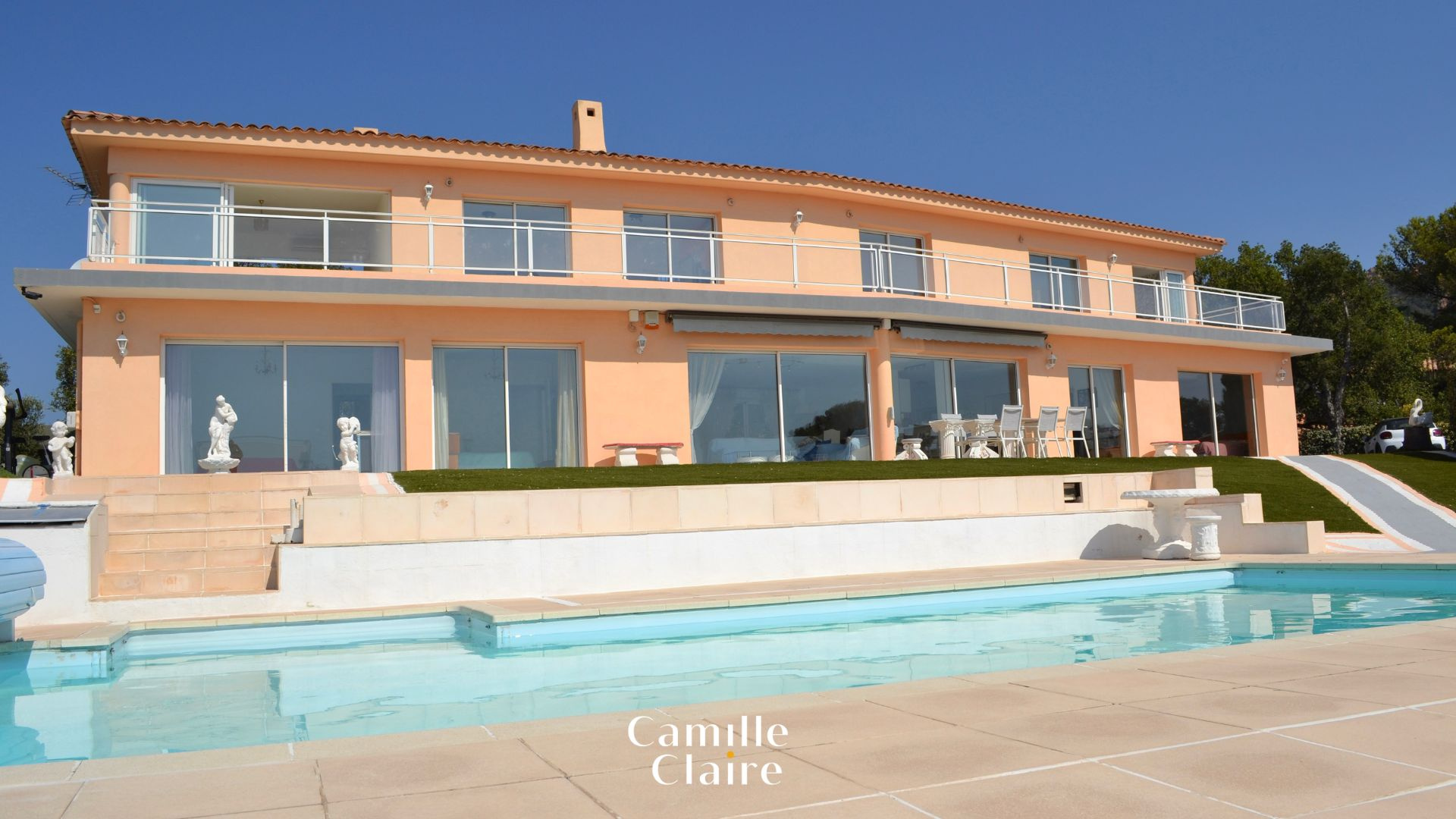 Au sein d'un domaine sécurisé et très calme dans cette superbe commune d'Agay, venez découvrir cette charmante villa contemporaine de 250 m2 sur son lit de 1280 m2 qui vous offre une véritable vue mer (encore plus merveilleuse sur place que sur les photos), mais également une vue sur les collines de l'Estérel avec son accès direct (Zone natura 2000). Tout simplement MAGIQUE...
