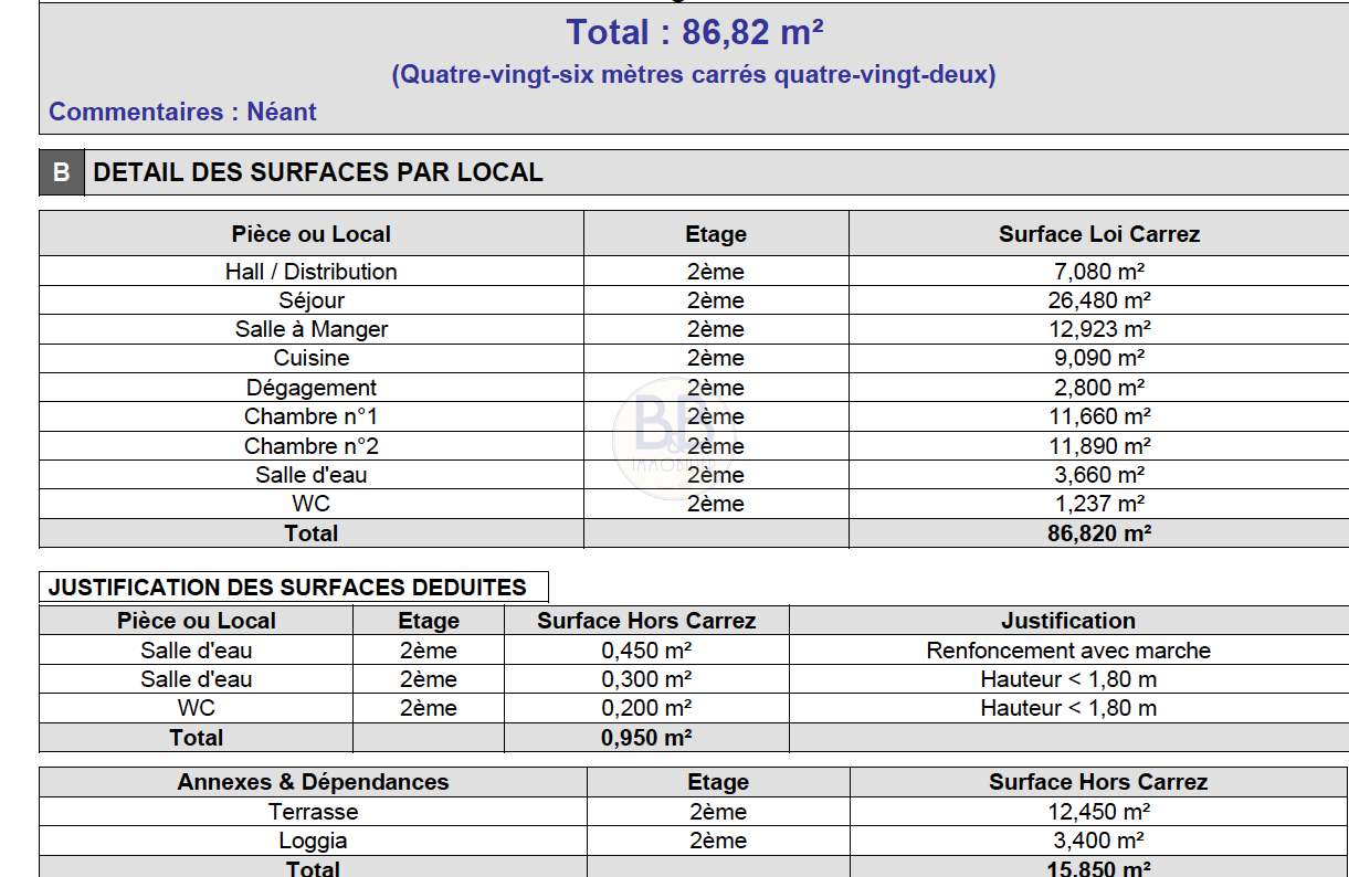 | Surface (m²) 87 m² | Année de construction 1980 | Chambres 2 chambres | Salles de bain 1 salle de bain |