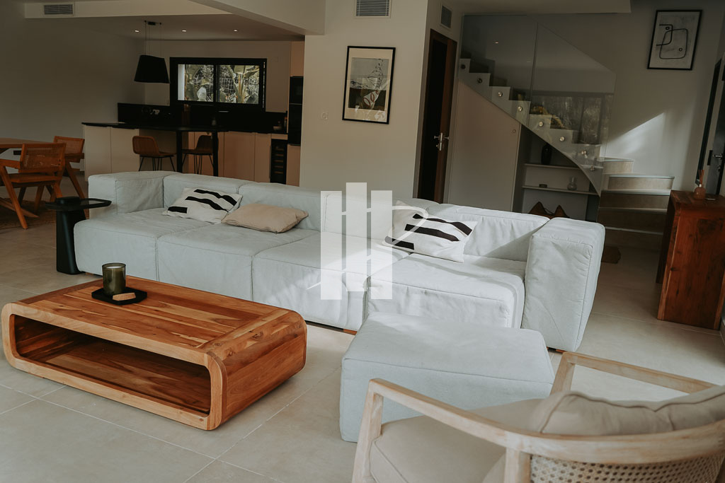 Dès votre entrée, vous serez séduit par ses vastes pièces de vie de plain-pied, incluant un séjour spacieux et une cuisine américaine entièrement aménagée et équipée, parfaite pour vos moments conviviaux en famille ou entre amis. La luminosité inonde l'espace grâce à ses grandes baies vitrées.