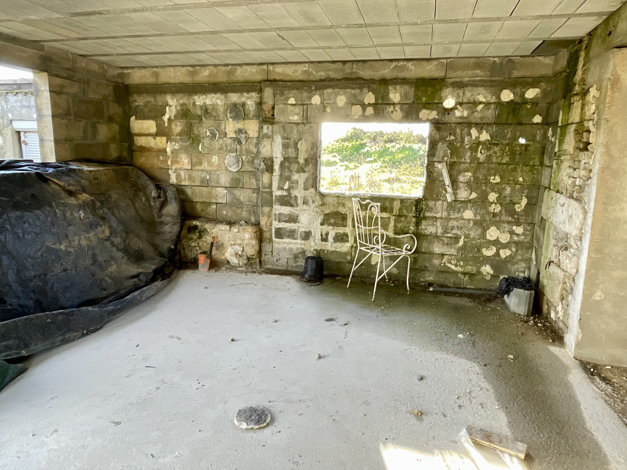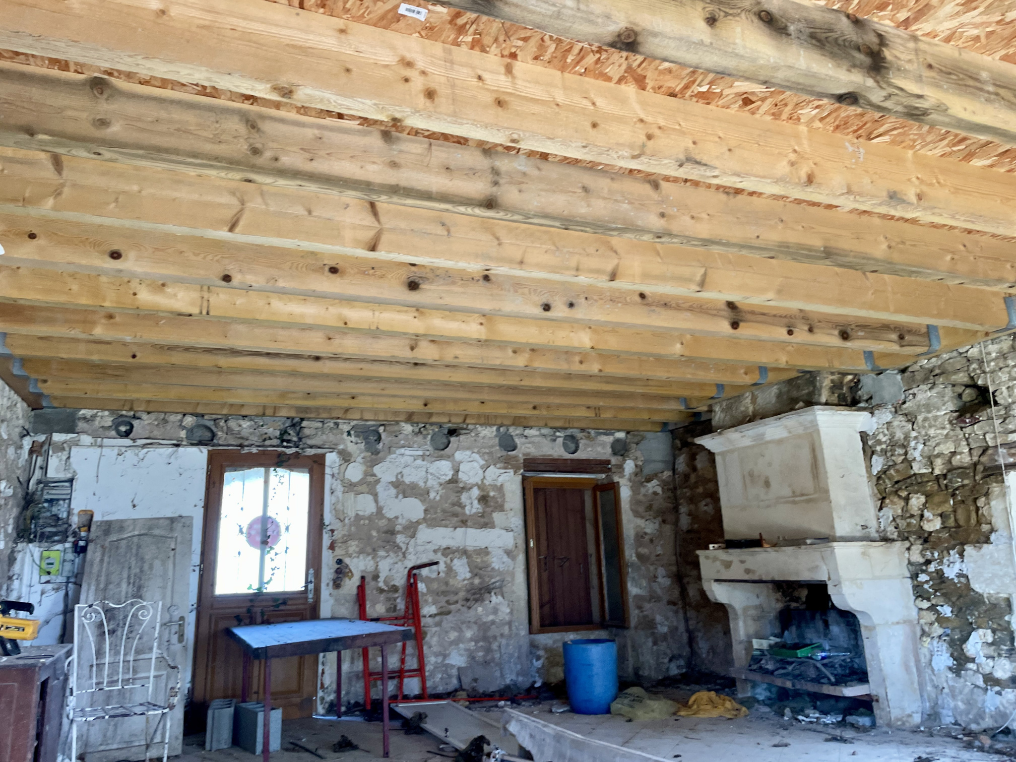 La toiture a été refaite à neuf et tout l'intérieur a été mis à nu.