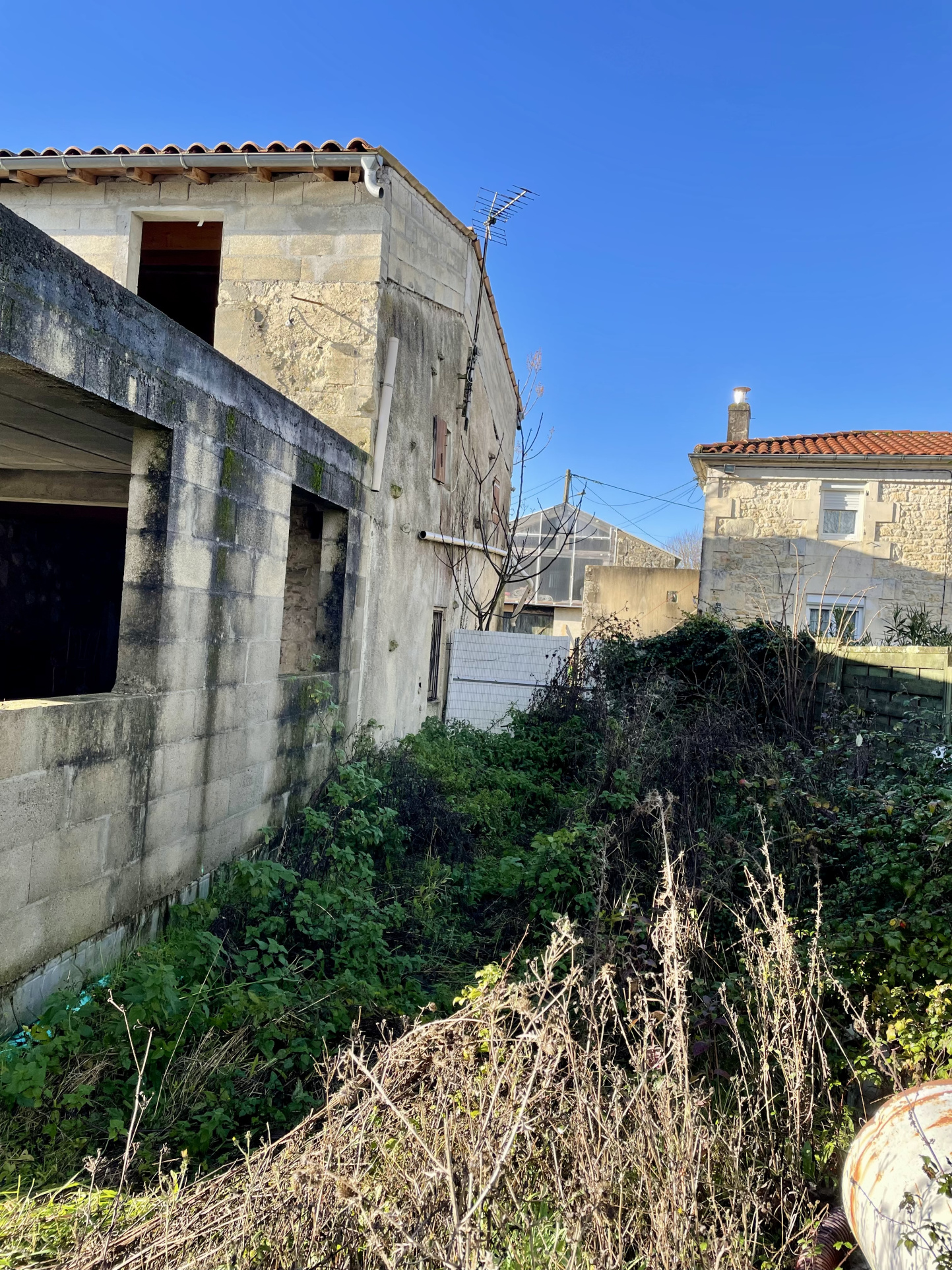 À l'extérieur du bourg de SAINT-SAVINIEN, dans un endroit calme au fond d'une impasse, je vous propose cette maison à rénover intégralement, suite à un abandon de projet.