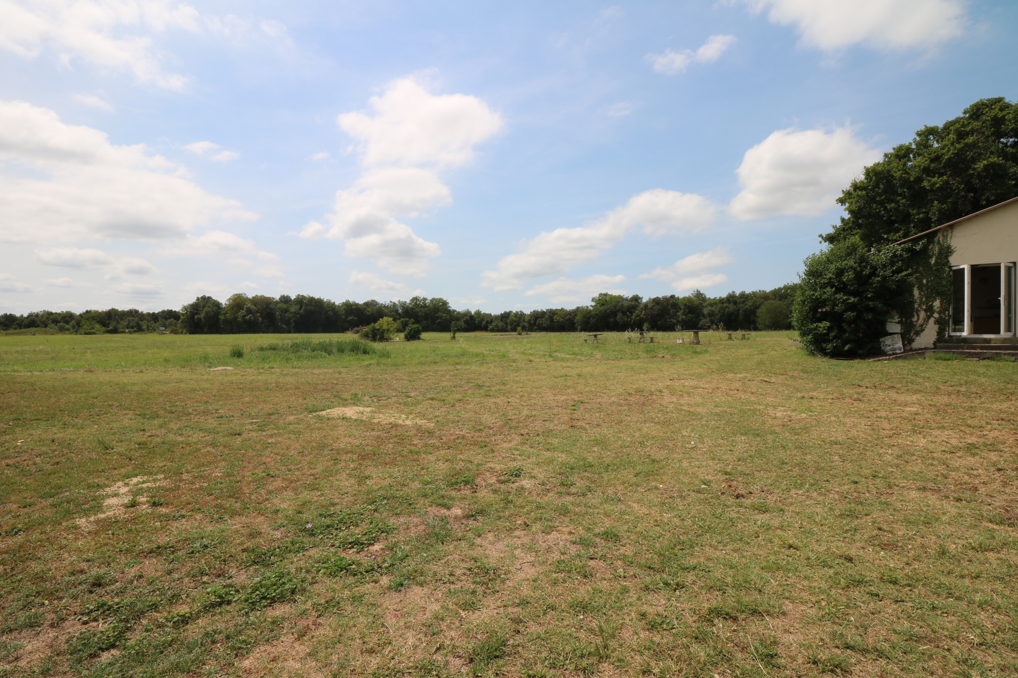 Sur une parcelle attenante de plus de 5 hectares, avec un autre accès possible, se trouve un bâtiment type salle de réception d'environ 100 m2, annexé de ses cuisines de 47 m2 nécessitant des travaux.