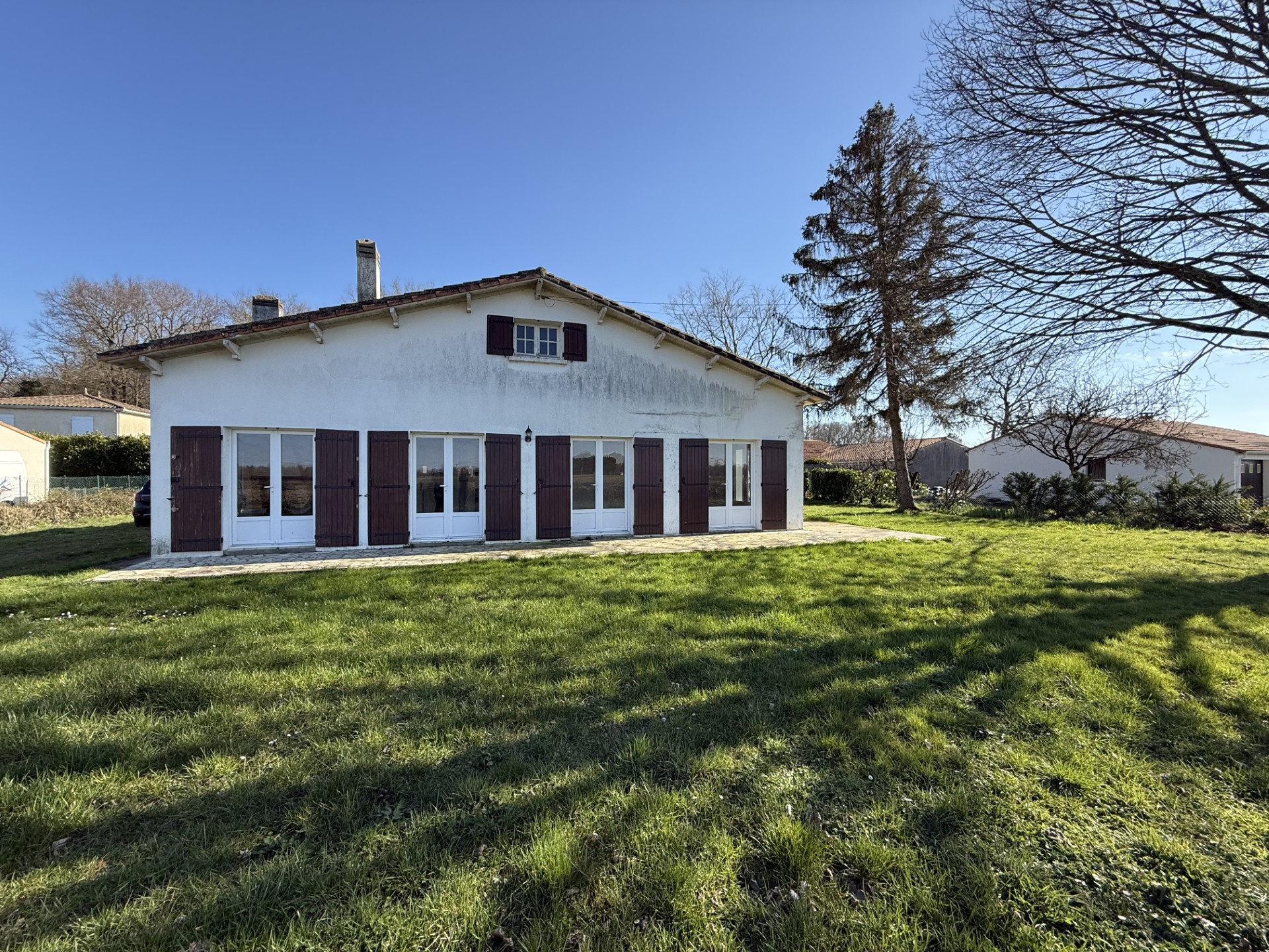 A SAUJON, BFG IMMOBILIER présente cette Maison de plain-pied, composée de 3 pièces, environ 85 m2 sur terrain clos et arboré de 1002 m2, comprenant : séjour, cuisine séparée avec cheminée, 2 chambres, salle de bains, wc indépendant, buanderie - Travaux à prévoir - Classe énergie : F.