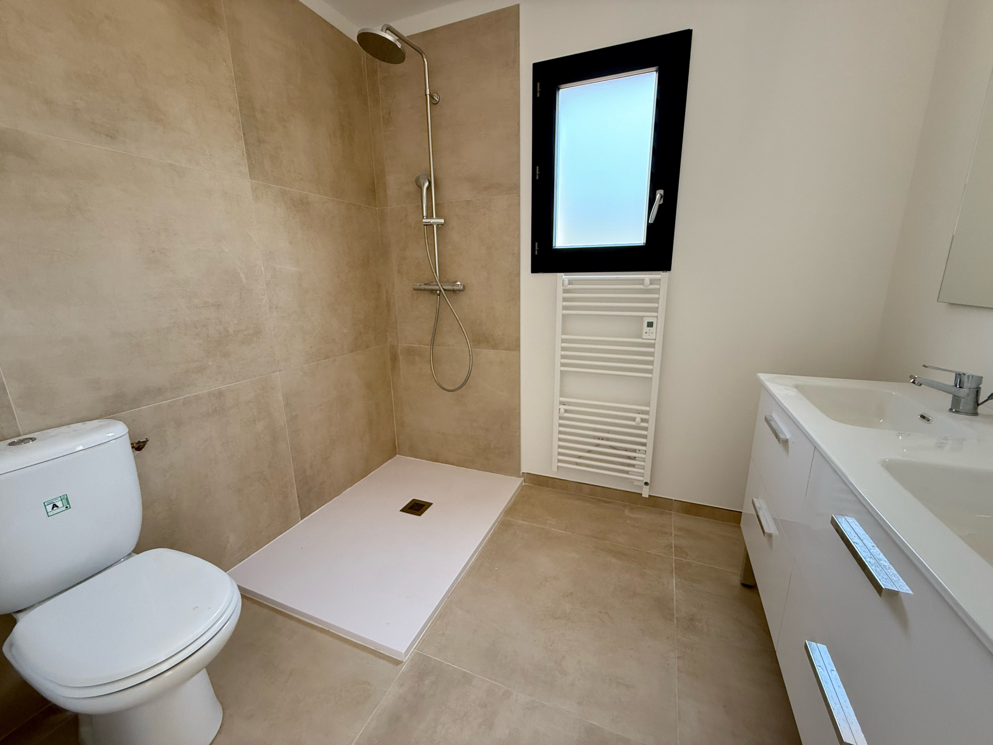 Prestations soignées : climatisation gainable, menuiseries aluminium double vitrage, volets roulants électriques, chauffe-eau thermodynamique.
