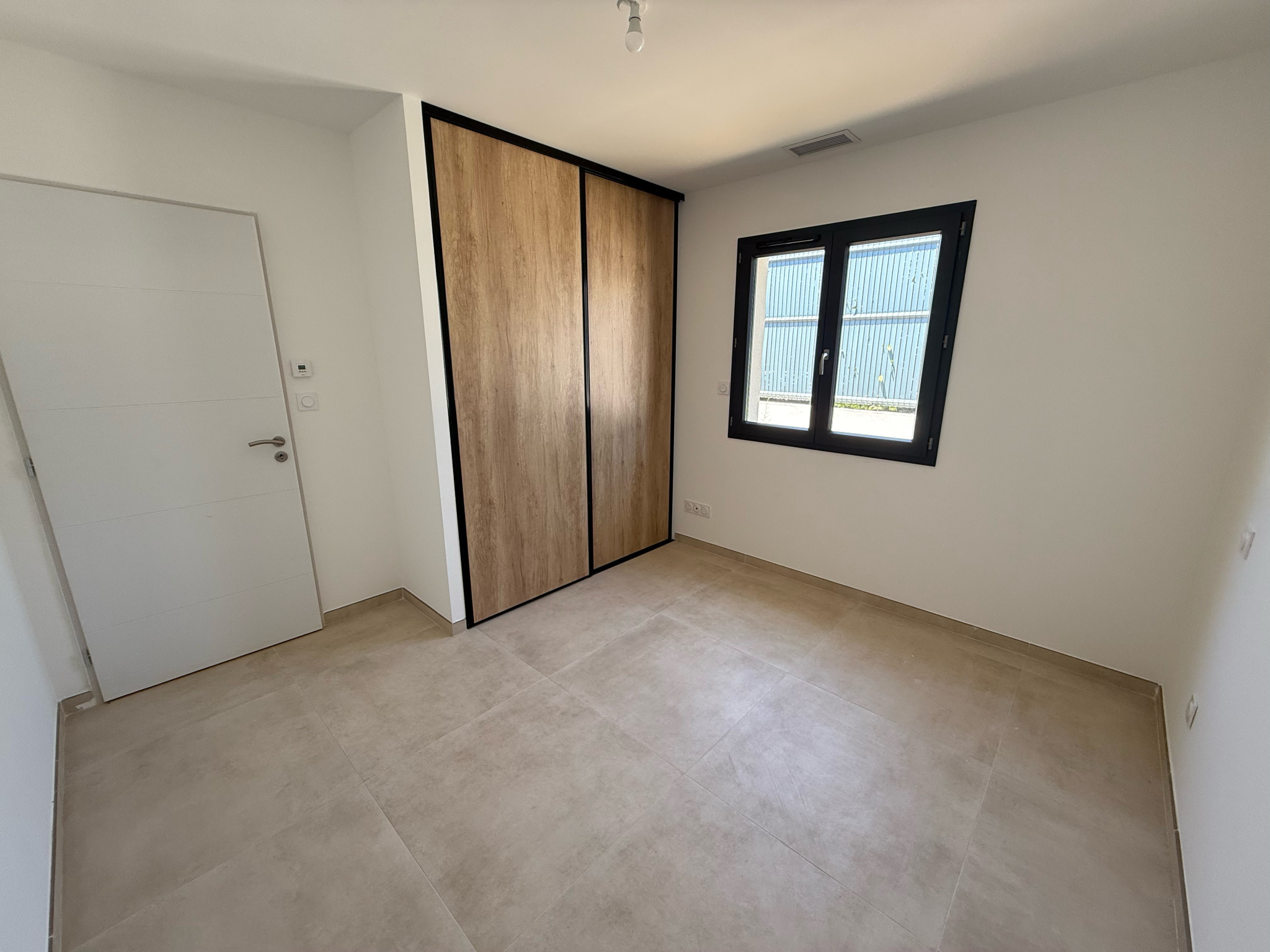Prestations : carrelage 80x80, climatisation gainable, menuiseries aluminium avec double vitrage, volets roulants électriques, chauffe-eau thermodynamique, terrasse carrelée. Maison conforme à la RT 2012 et couverte par la garantie dommage-ouvrage.