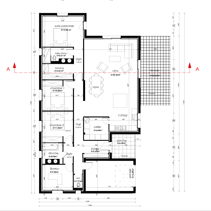 - Surface séjour : 52