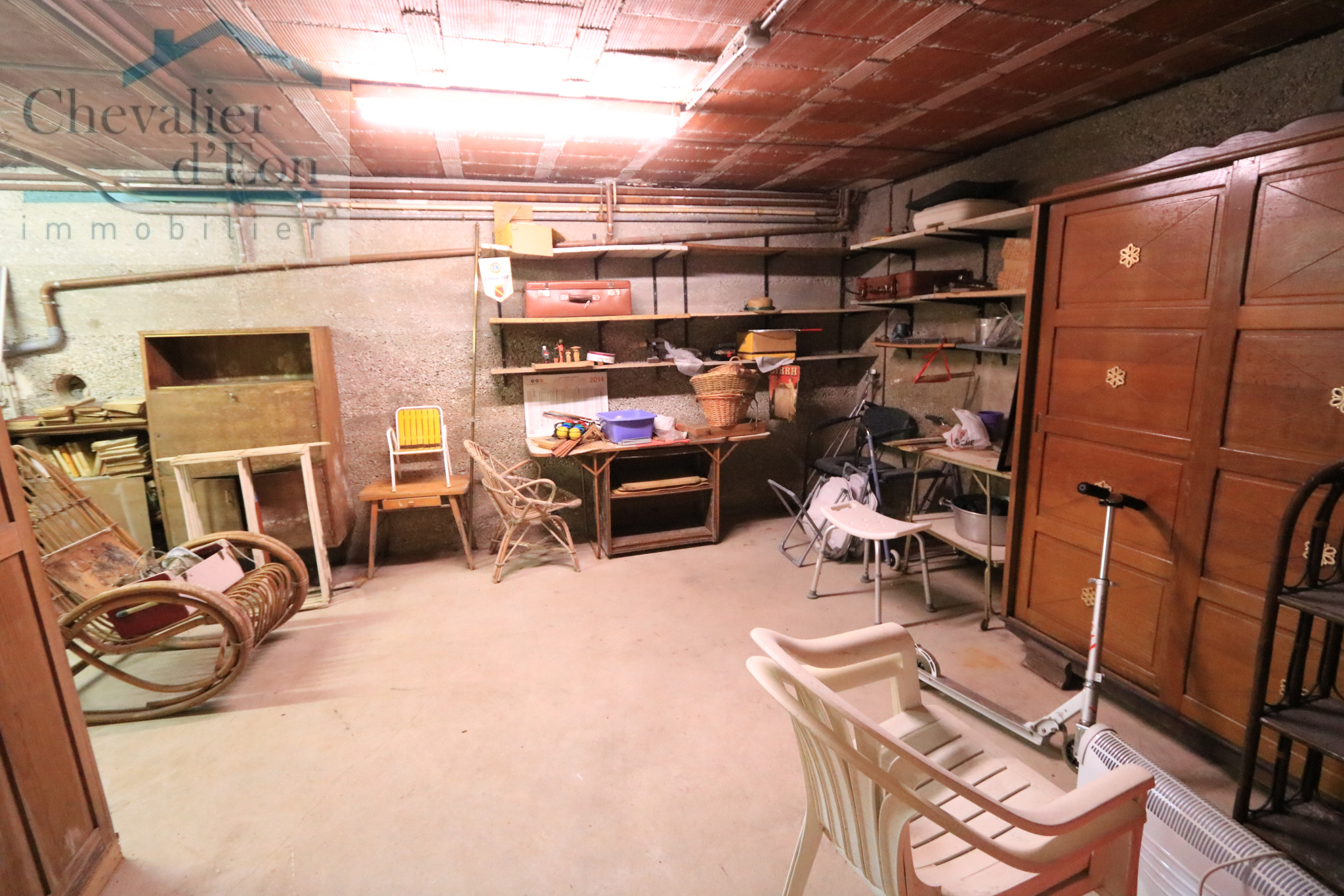 Au sous-sol, degament, garage, atelier, cave, chaufferie, pièce cuve à fioul.