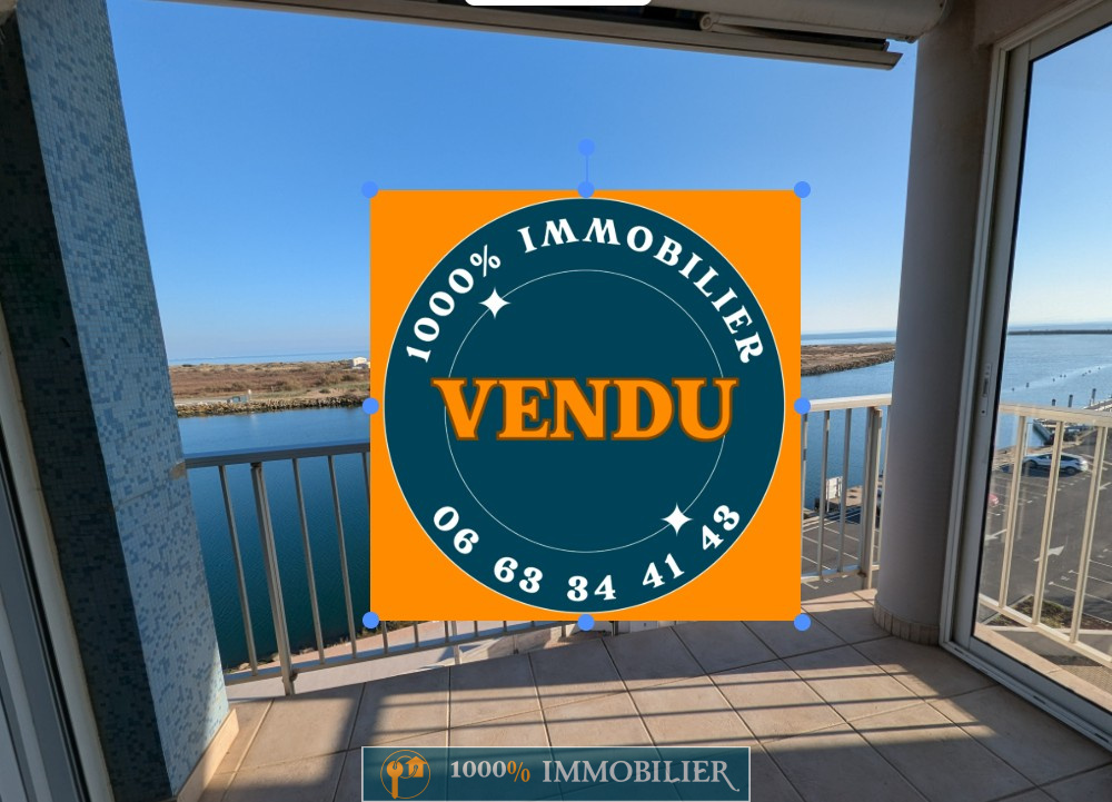 1000% IMMOBILIER - VENDU :appartement traversant et lumineux au 4ème et dernier étage avec ascenseur, de 47.56m2 hab.+ terrasse 4.64m2. Entrée avec placard, deux chambres avec placards, couloir, salle d'eau, water-closet et séjour/cuisine 19.02m2. Magnifique vue sur l'Orb, le port, panoramique de Sète aux Pyrénées, depuis le séjour et la chambre. Double vitrage PVC, porte d'entrée PVC, électricité refaite, climatisation avec pompe à chaleur volets roulants électriques, cuisine équipée. Centre-ville à 250m, plages à 350m, Béziers/gare TGV et autoroutes à 10mn en voiture. Produit rare et exceptionnel de par sa localisation et sa vue. Terrasse avec brise vent exposée sud sans vis à vis. Pour une visite contactez Philippe au 06 63 34 41 43